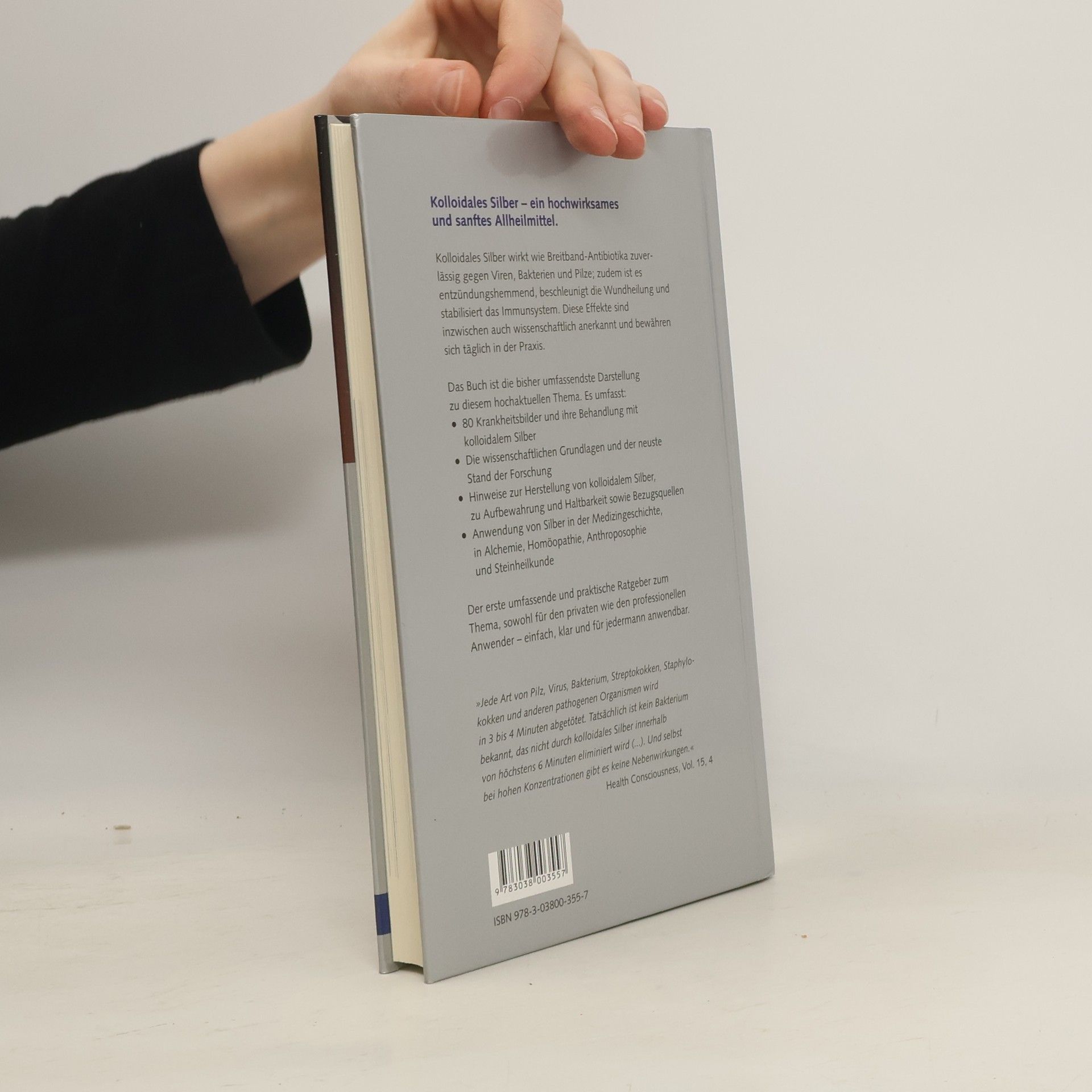 Kolloidales Silber setzt sich heute als wirksames Allheilmittel in der Naturheilpraxis und Therapie durch. Kolloidales Silber wirkt wie ein Breitband- Antibiotikum zuverlässig gegen Viren, Bakterien und Pilze, ist zudem entzündungshemmend, beschleunigt die Wundheilung und stabilisiert das Immunsystem. Alle diese Effekte sind inzwischen auch wissenschaftlich genau belegt. Aufgebaut nach 80 Krankheitsbildern von 'Abszess' bis 'Zahnfleischentzündung ' wird das Beschwerdebild und die Behandlung mit kolloidalem Silber mit allen Angaben zur praktischen Anwendung, Dosierung und Wirkungsgrenzen detailliert dargestellt. Hinweise zu Herstellung und Aufbewahrung von kolloidalem Silber ergänzen das Buch. Das Buch ist die bislang umfassendste Darstellung zu diesem hochaktuellen Thema und der erste umfassende praktische Ratgeber sowohl für den privaten wie den professionellen Anwender – einfach, klar und für jedermann anwendbar.