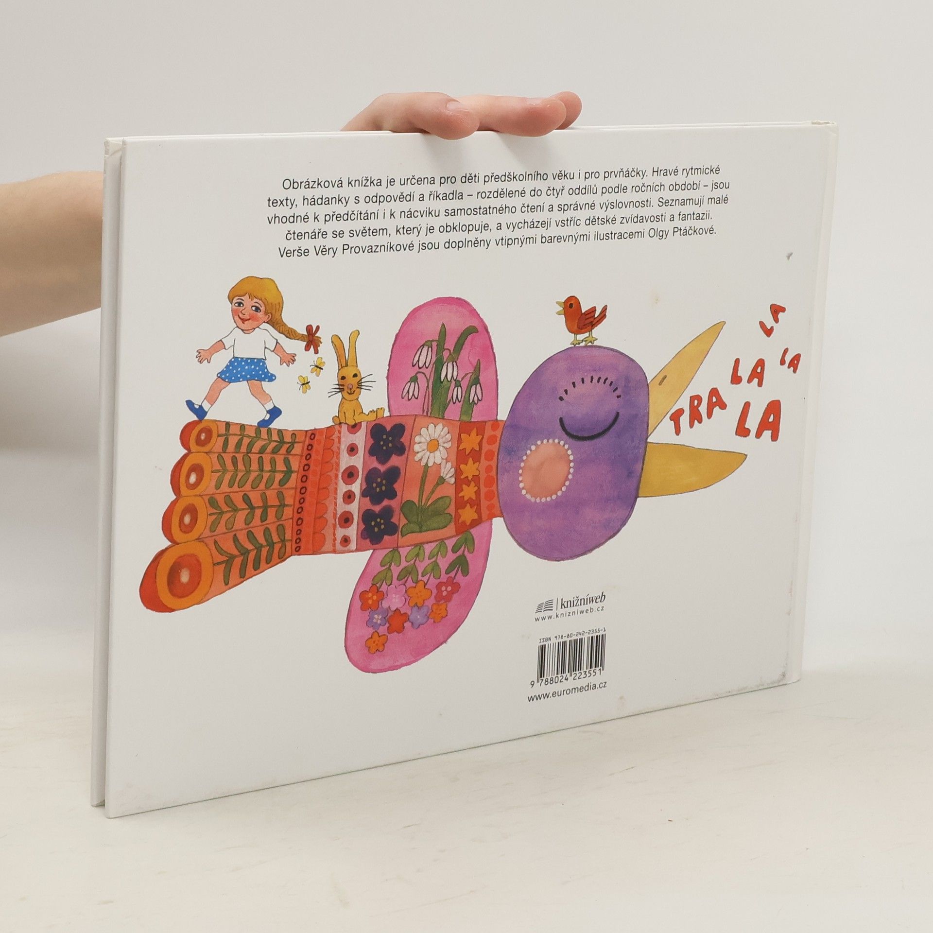 Hravé rytmické texty, hádanky a říkadla s celostránkovými ilustracemi. Čtení pro děti od čtyř let. Obrázková, bohatě ilustrovaná knížka je námětově rozdělena podle ročních období. Veršované hádanky obsahují zároveň odpověď. Knížka je vhodná k předčítání i k nácviku samostatného čtení.