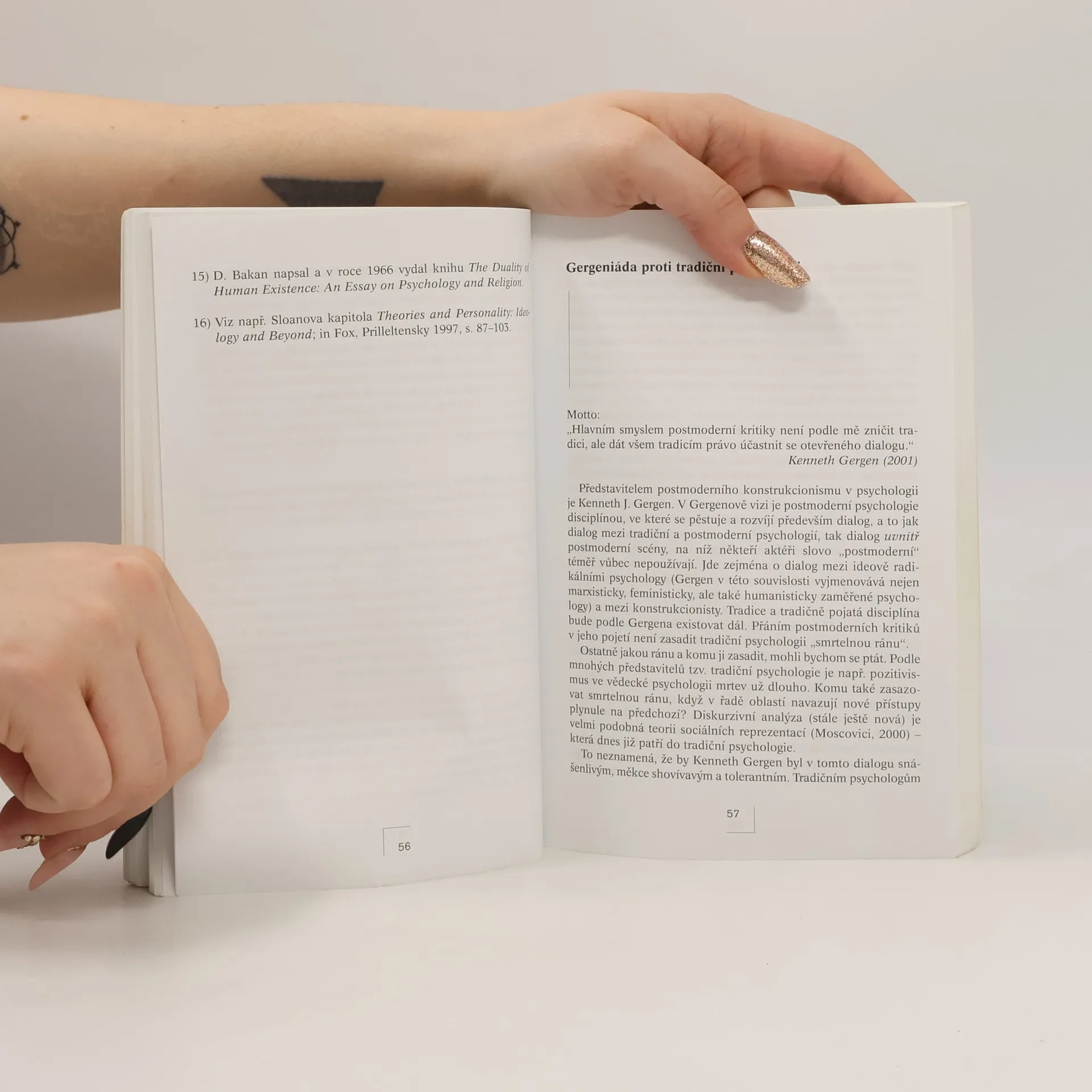 Kritická psychologie se zabývá historickým, společenským a ideologickým kontextem psychologických konceptů, metodologických postupů a tvrzení. Kriticky zkoumá a přehodnocuje tradiční psychologická stanoviska a teorie. Jejími hlavními východisky, sloužícími i jako východiska pro tuto publikaci, se stal sociální konstrukcionismus (sociální realita jako konstrukt), diskurzní postoj (analyzování diskurzů), dekonstruování (zpochybňování a přezkoumávání stávajících tvrzení, což umožňuje přijetí nových, alternativních pohledů a zachování plurality). Úvodní část publikace vymezuje směr kritické psychologie, jeho historický vývoj a jednotlivé proudy. Druhá část pak kriticky zhodnocuje tradiční psychologickou typologii, klasifikaci, kategorizaci. Zvláštní pozornost je věnována užívání jazyka a vědecké rétorice (vyjadřování je zároveň interpretací, takže ovlivňuje naše poznávání), ale také vědeckým dogmatům, dogmatickým postojům v psychologii. Třetí část se soustřeďuje na psychologii v praxi - psychoterapii, speciálně narativní terapii. Samotný závěr pak kriticky zhodnocuje samotnou kritickou psychologii a představuje ji jako sebereflexi vlastní disciplíny. Odborná publikace pro vážnější zájemce o psychologii a její vývoj.