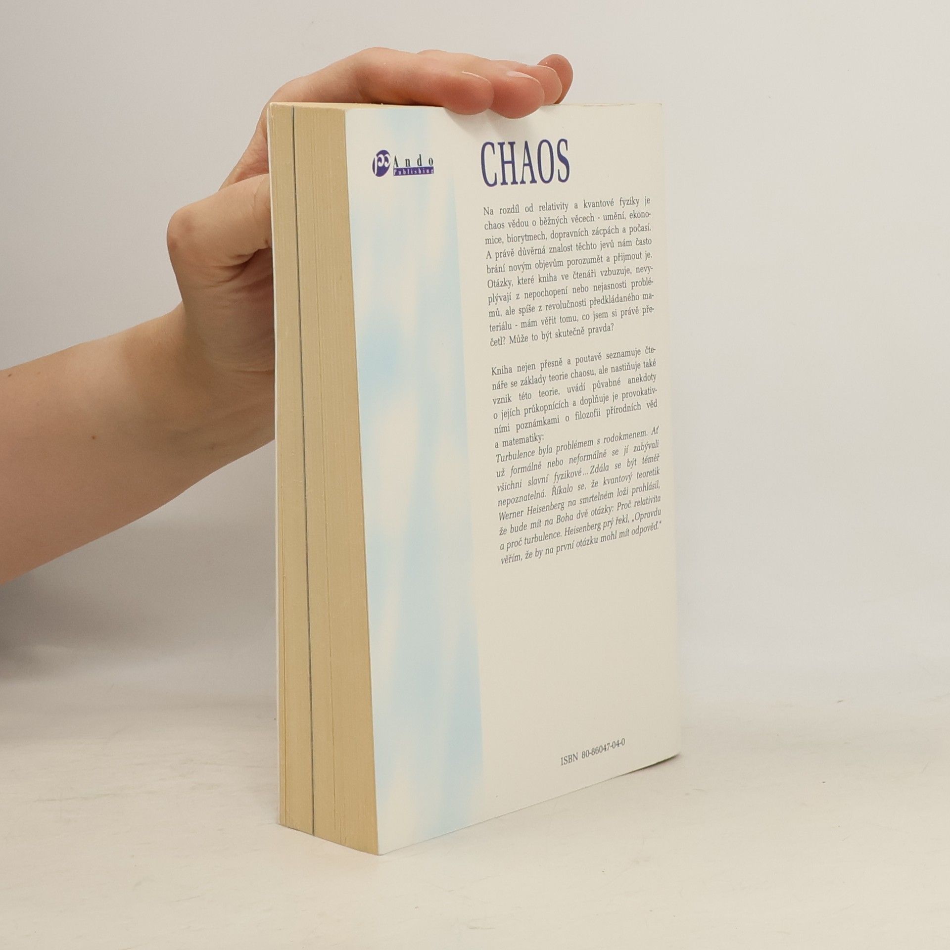 Čtivě a srozumitelně napsaná monografie sleduje historii teorie chaosu, vědní disciplíny o běžných věcech (umění, ekonomice, biorytmech, dopravních zácpách a počasí), která se odvrací od příčinně následkového chápání světa a klasické newtonovské fyziky.