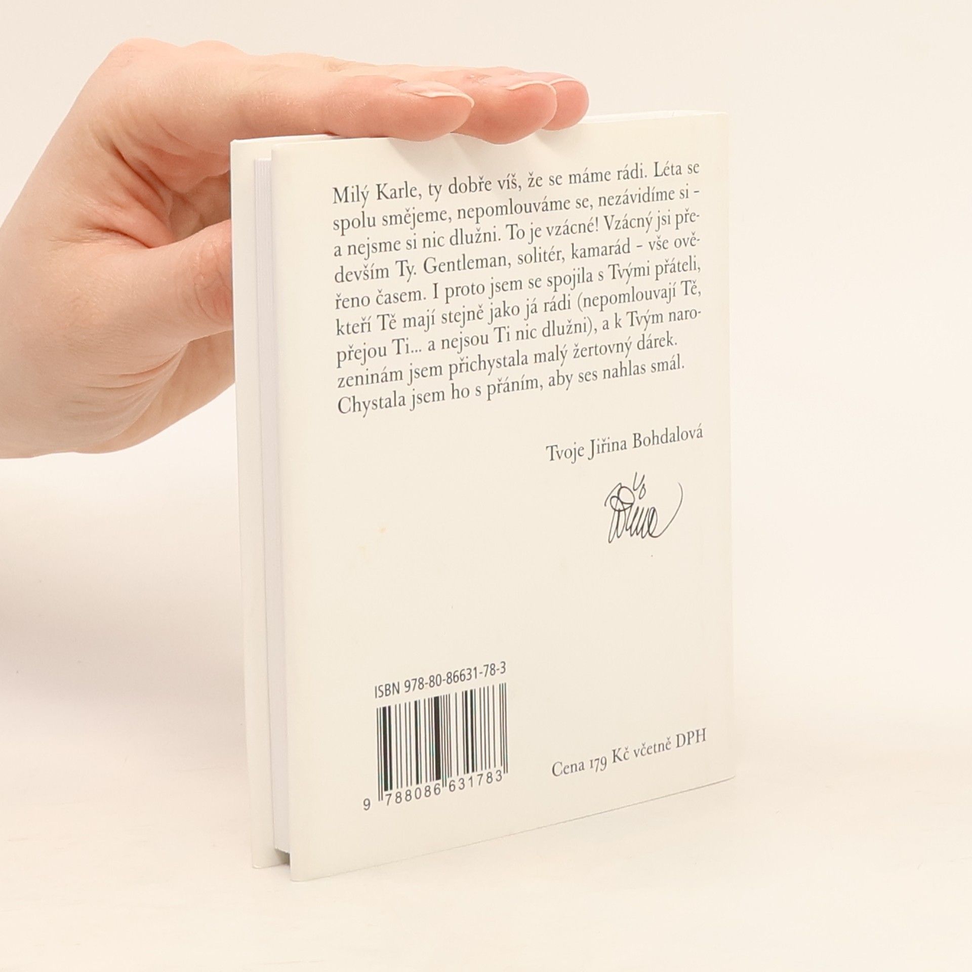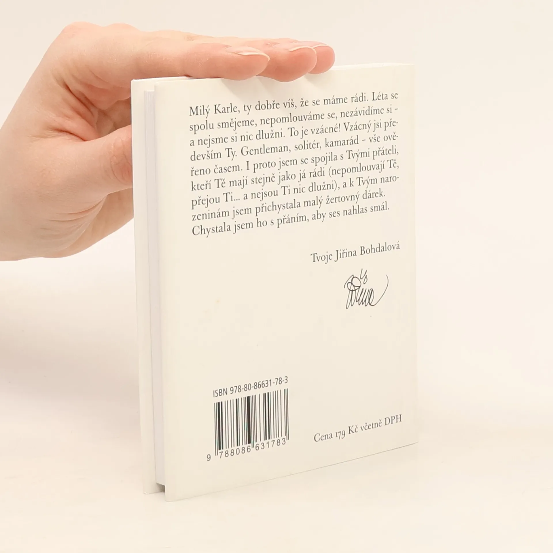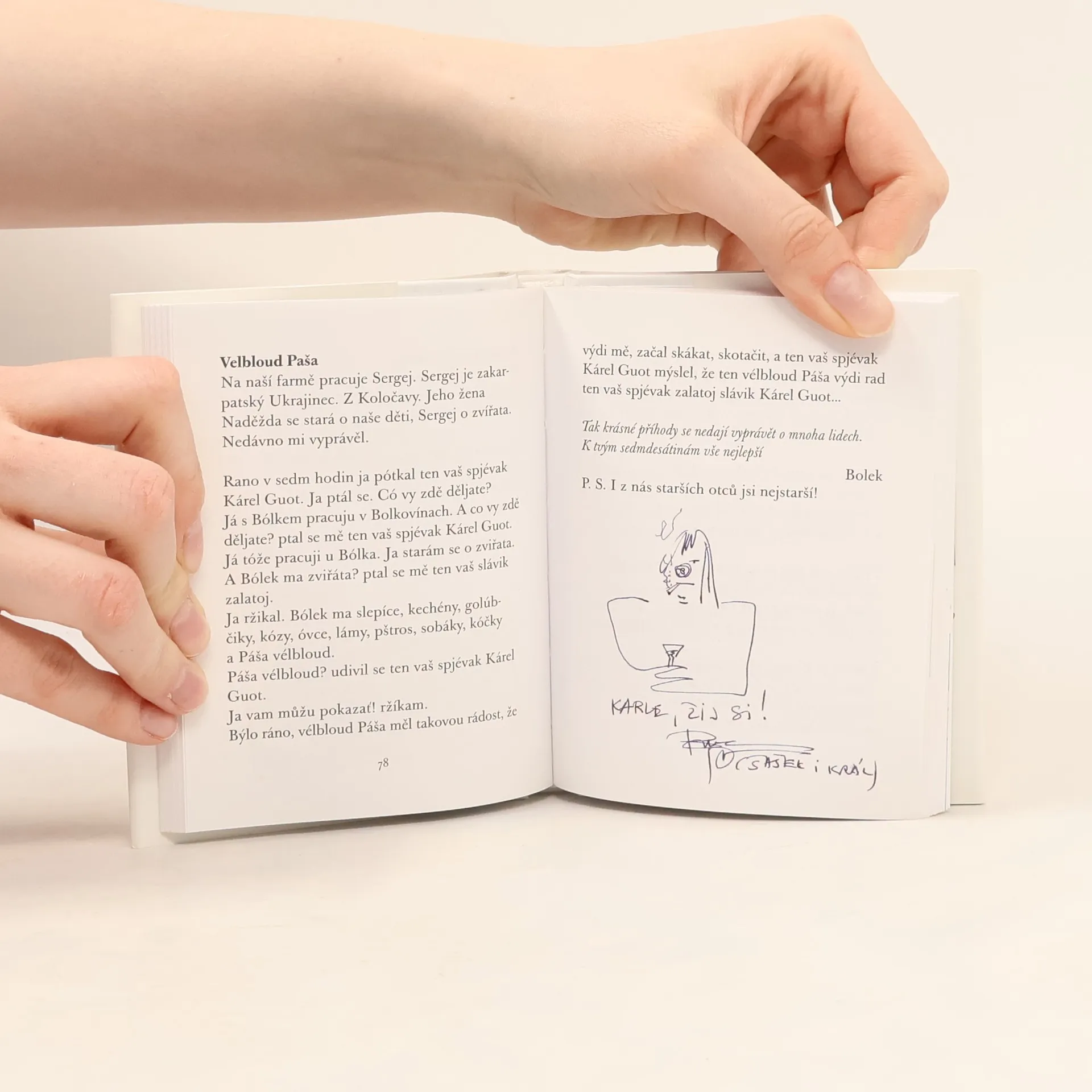 balíček legrace pro sedmdesátníka Karla Gotta z pera Jiřiny Bohdalové a Slávky Kopecké (ilustrace Pavel Skalník) s přispěním mnoha osobních přátel Mistra. Milý Karle, ty dobře víš, že se máme rádi. Léta se spolu smějeme, nepomlouváme se, nezávidíme si a nejsme si nic dlužni. To je vzácné! Vzácný jsi především Ty. Gentleman, solitér, kamarád vše ověřeno časem. I proto jsem se spojila s Tvými přáteli, kteří Tě mají stejně jako já rádi (nepomlouvají Tě, přejou Ti a nejsou Ti nic dlužni) a k Tvým narozeninám jsem přichystala malý žertovný dárek. Chystala jsem ho s přáním, aby ses nahlas smál. Říct Ti to musím: moc ráda Tě poslouchám, ale nade vše miluju chvíle, kdy se tak trochu zakloníš a pak řveš smíchy.