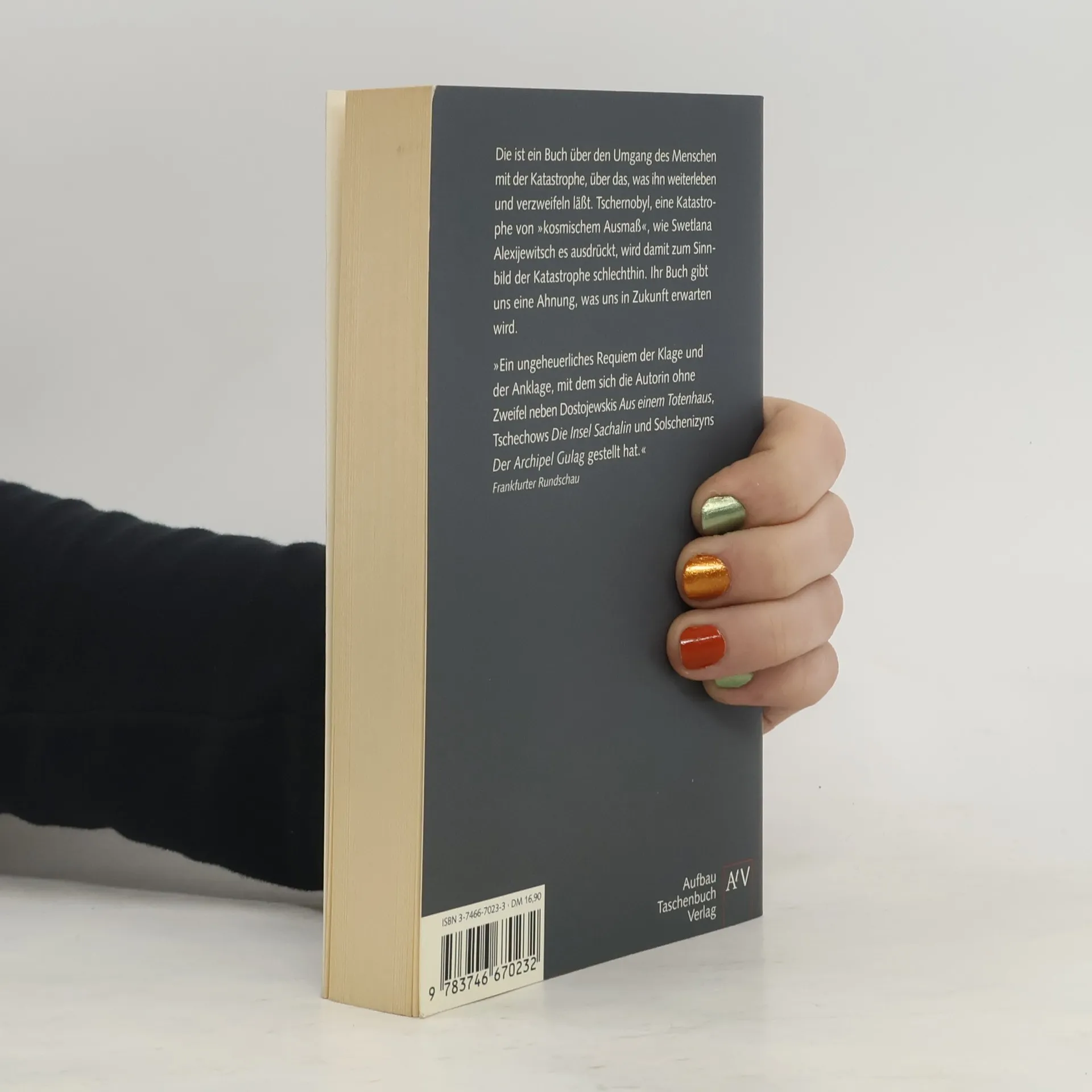 Über mehrere Jahre hat Swetlana Alexijewitsch Menschen befragt, deren Leben von der Tschernobyl-Katastrophe gezeichnet wurden. Entstanden sind eindringliche psychologische Portraits - literarisch bearbeitete Monologe - , die von Menschen berichten, die sich ihre Zukunft in einer Welt der Toten aufbauen müssen.