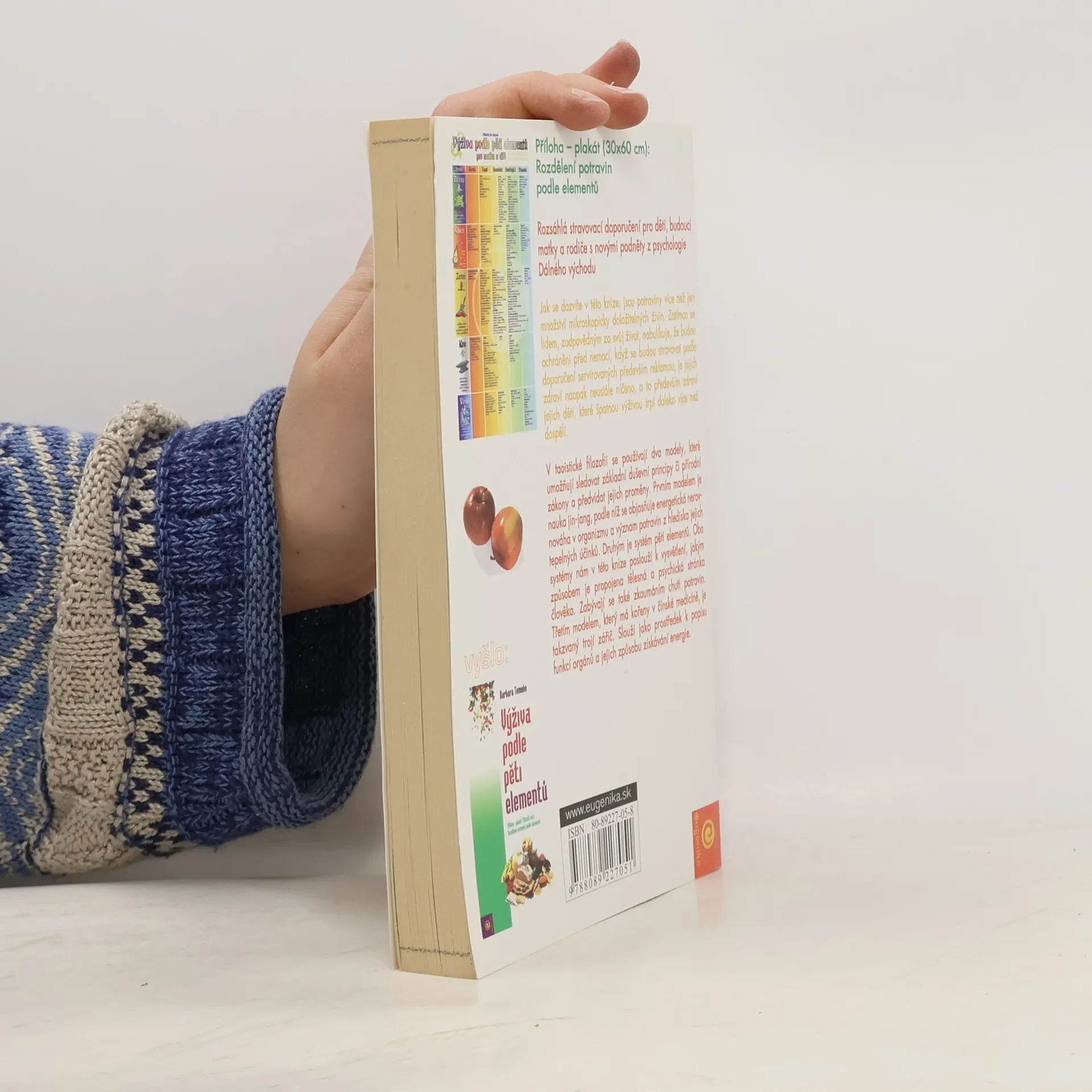 Kniha pojednává o výživě z hlediska východního myšlení. Potraviny zkoumá vzhledem k jejich tepelným účinkům. Důraz klade na propojení tělesné a psychické stránky člověka. Zaměřuje se na výživu související s přípravou na rodičovství, kojením a vařením pro děti. Najdete zde množství důležitých informací, údajů, doporučení a receptů. ... celý text