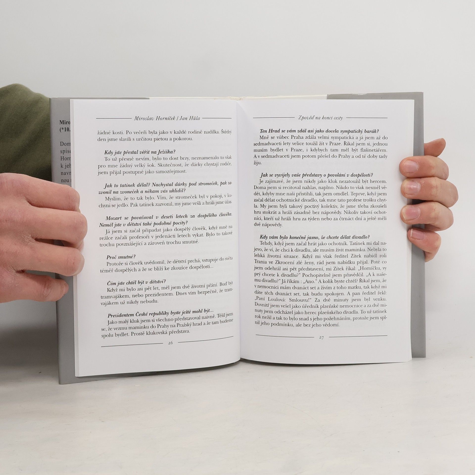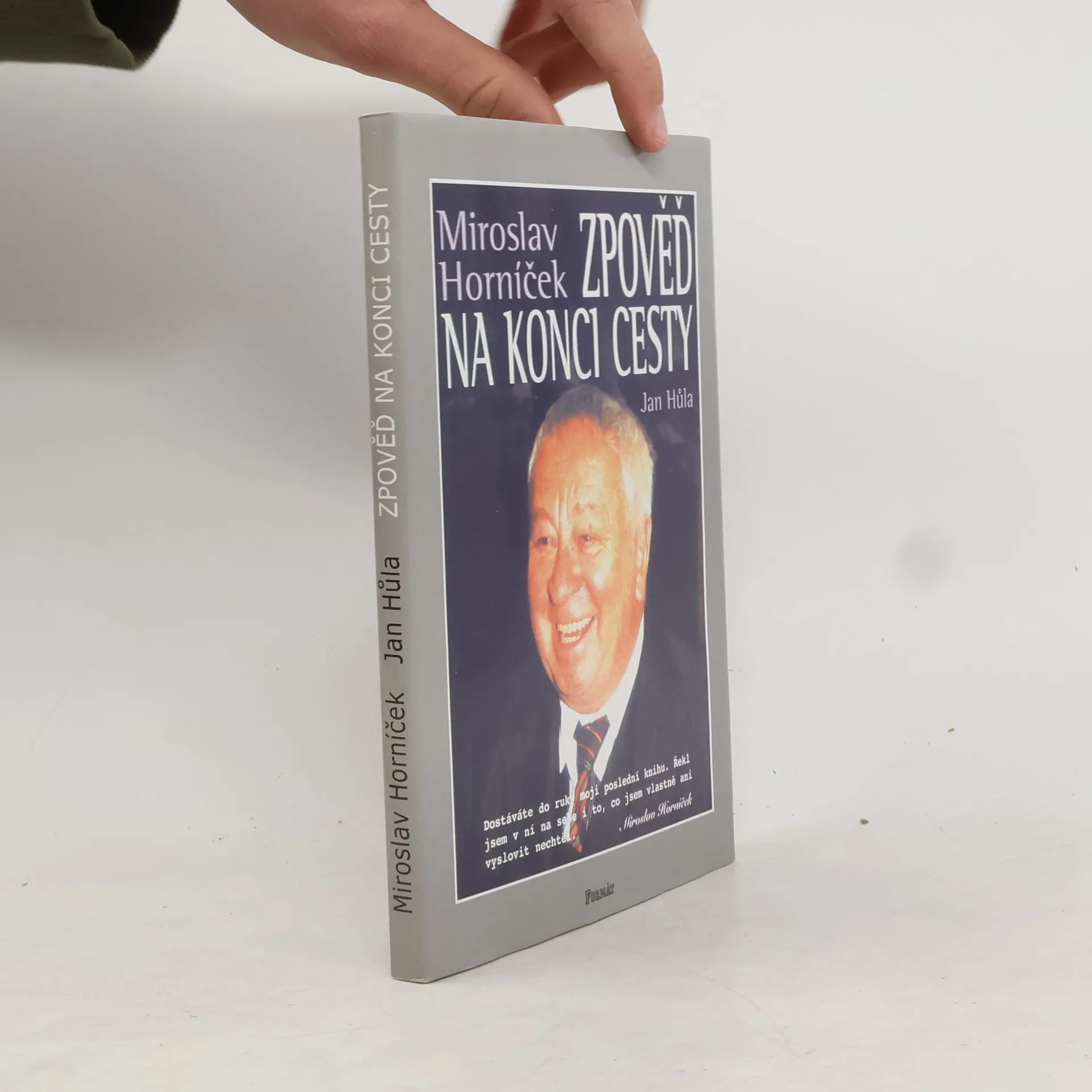 Miroslav Horníček u zpovědi na konci cesty. V rozhovoru vedeném Janem Hůlou se autor vrací k létům zralým i nezralým, k osobnostem, s nimiž se na své cestě životem setkal a ke svým trvalým láskám - herectví a výtvarnému umění. Ačkoliv má být tato knížka jakýmsi odkazem na rozloučenou, je psána s humorem charakteristickým pro spolutvůrce slavných forbín a tvůrce oblíbených Hovorů H.... celý text