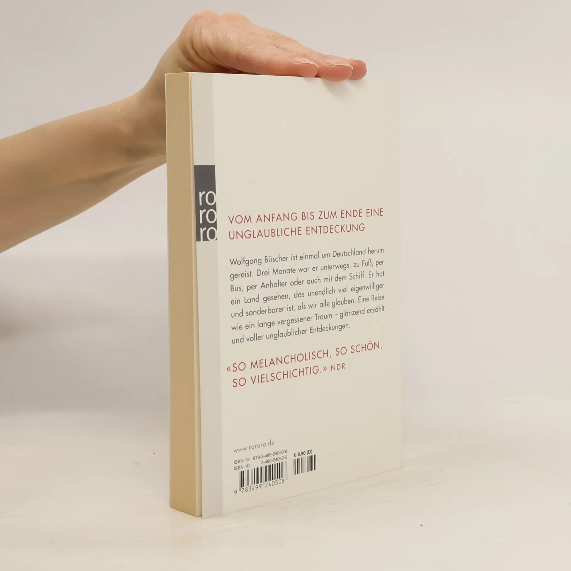Vom Anfang bis zum Ende eine unglaubliche EntdeckungWolfgang Büscher ist einmal um Deutschland herum gereist. Drei Monate war er unterwegs, zu Fuß, per Bus, per Anhalter oder auch mit dem Schiff. Er hat ein Land gesehen, das unendlich viel eigenwilliger und sonderbarer ist, als wir alle glauben. Eine Reise wie ein lange vergessener Traum – glänzend erzählt und voller unglaublicher Entdeckungen.«So melancholisch, so schön, so vielschichtig.» (NDR)