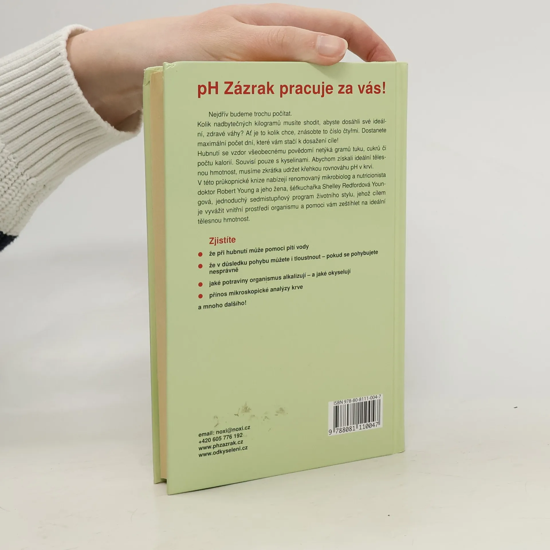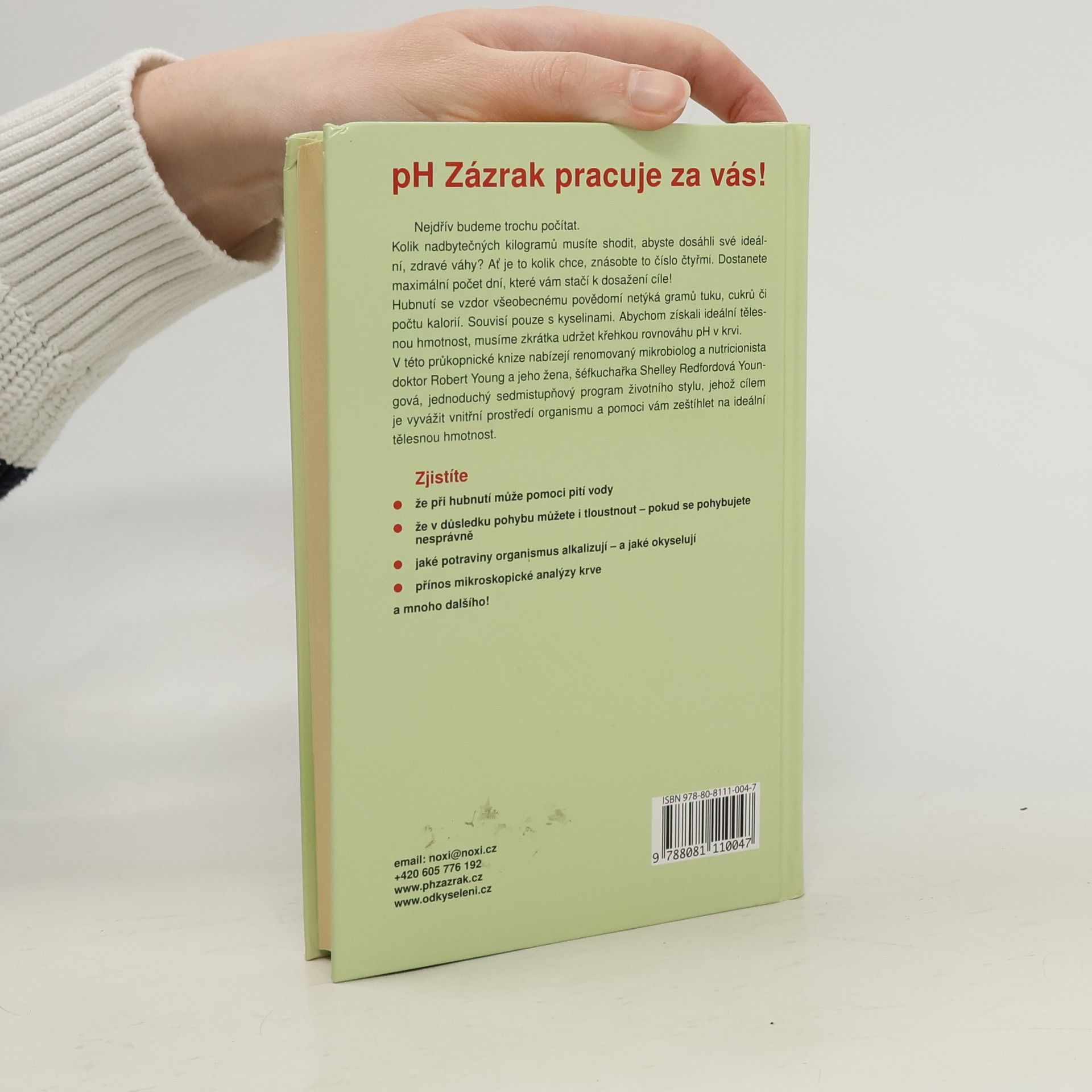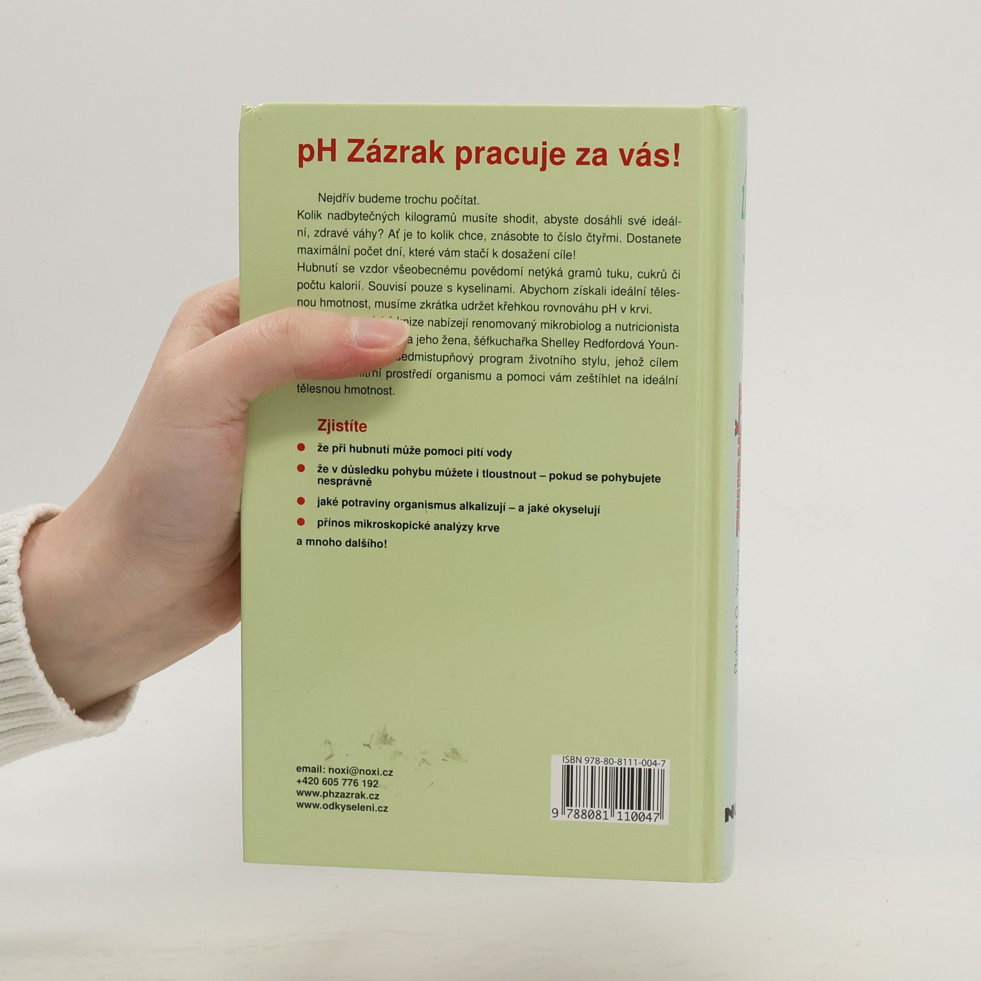 Jak dosáhnout vyváženého vnitřního prostředí a ideální tělesné hmotnosti. Nejdřív budeme trochu počítat. Kolik nadbytečných kilogramů musíte shodit, abyste dosáhli své ideální, zdravé váhy? Ať je to kolik chce, znásobte to číslo čtyřmi. Dostanete maximální počet dní, které vám stačí k dosažení cíle! Hubnutí se vzdor všeobecnému povědomí netýká gramů tuku, cukrů či počtu kalorií. Souvisí pouze s kyselinami. Abychom získali ideální tělesnou hmotnost, musíme zkrátka udržet křehkou rovnováhu pH v krvi. V této průkopnické knize nabízejí renomovaný mikrobiolog a nutricionista doktor Robert Young a jeho žena, šéfkuchařka Shelley Redfordová Youngová, jednoduchý sedmistupňový program životního stylu, jehož cílem je vyvážit vnitřní prostředí organismu a pomoci vám zeštíhlet na ideální tělesnou hmotnost. Zjistíte - že při hubnutí může pomoci pití vody - že následkem pohybu můžete i tloustnout pokud se pohybujete nesprávně - jaké potraviny organismus alkalizují a jaké okyselují - přínos mikroskopické analýzy krve a mnoho dalšího!