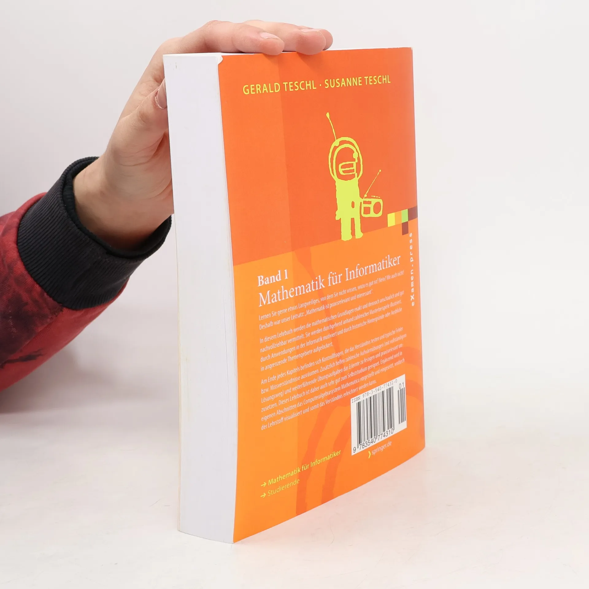 Das Lehrbuch vermittelt mathematische Grundlagen exakt und anschaulich zugleich. Der Lernstoff wird anhand von Musterbeispielen und Informatik-Anwendungen illustriert. Zur Auflockerung bietet der Band historische Hintergründe und Ausblicke in angrenzende Themengebiete. Dieses Lehrbuch eignet sich auch zum Selbststudium, denn Kontrollfragen am Ende jedes Kapitels testen das Verständnis, Aufwärmübungen und weiterführende Aufgaben helfen das Erlernte zu festigen. Zur Visualisierung wird in Teilen das Computeralgebrasystem Mathematica eingesetzt.