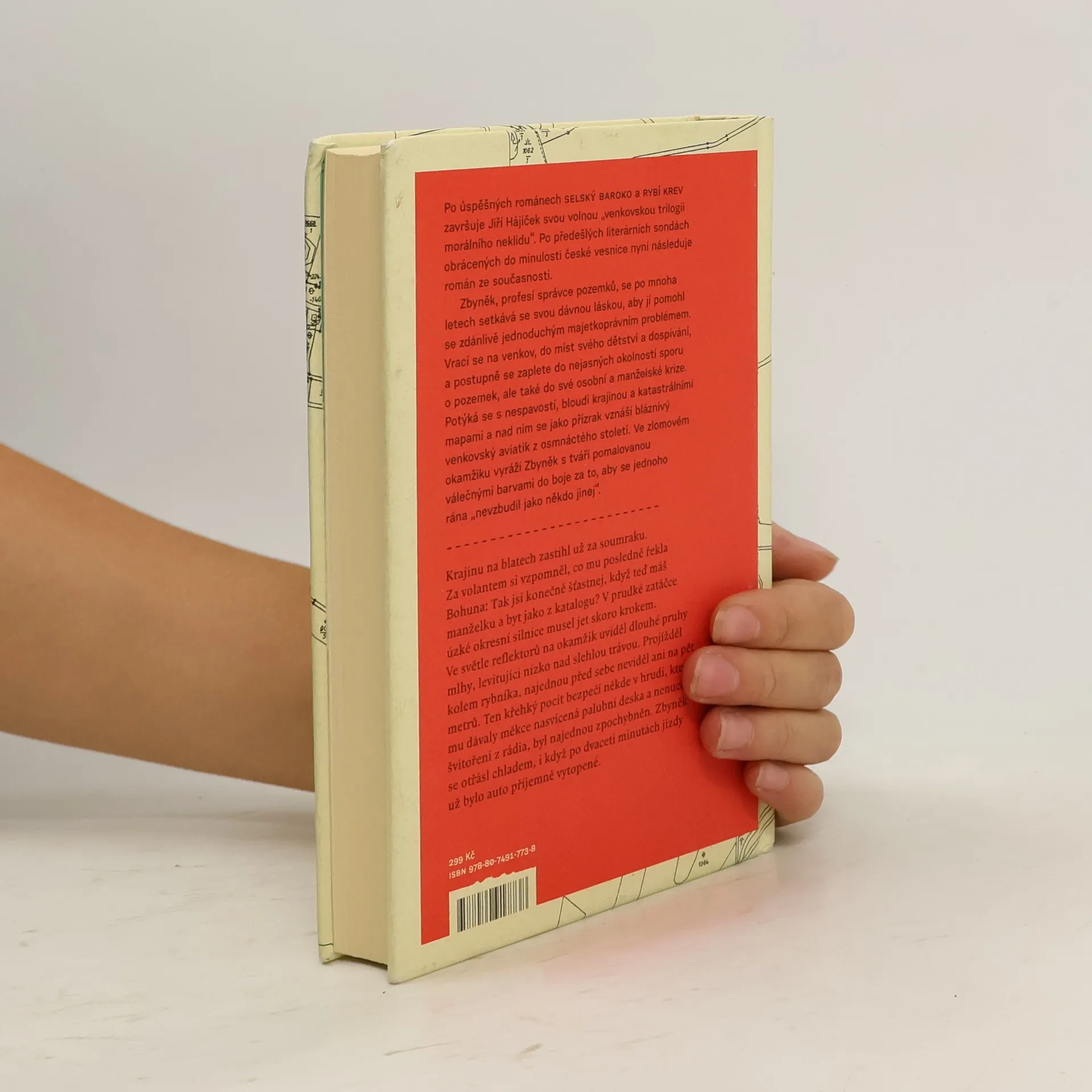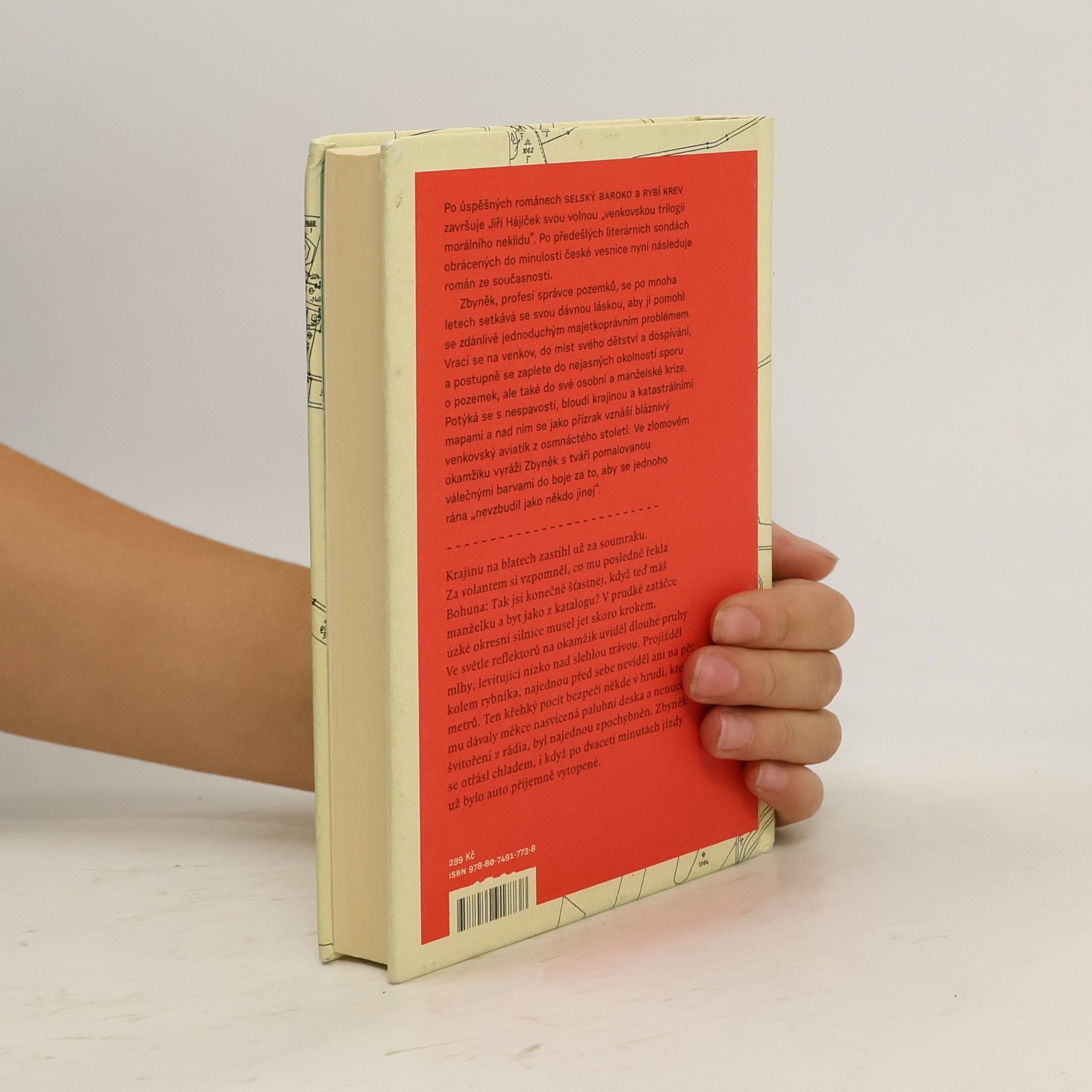 Po úspěšných románech Selský baroko a Rybí krev završuje Jiří Hájíček svou volnou „venkovskou trilogii morálního neklidu“. Předešlé literární sondy obrácené do minulosti české vesnice následuje nyní román ze současnosti. Opět silný příběh, v němž kromě lidí tentokrát hrají důležitou roli pozemky — zděděná pole a spory kolem jejich vlastnictví. Venkovská krajina jihočeských blat je vůbec v textu silně přítomna a kromě jedinečné atmosféry dodává příběhu i historický kontext a také nepřímo vstupuje do osudů hlavních postav. Zbyněk, profesí správce pozemků, se po mnoha letech setkává se svou dávnou láskou, aby jí pomohl se zdánlivě jednoduchým majetkoprávním problémem. Vrací se na venkov, na místa svého dětství a dospívání, a zamotává se do nejasných okolností pozemkového sporu, ale také do osobní a manželské krize. Potýká se s nespavostí, bloudí krajinou a katastrálními mapami a nad ním se jako přízrak vznáší bláznivý venkovský aviatik z osmnáctého století. Ve zlomovém okamžiku jde Zbyněk s tváří pomalovanou válečnými barvami do boje. Za to, co považuje za správné, za sny dětství a „aby se jednoho rána neprobudil jako někdo jiný“.
