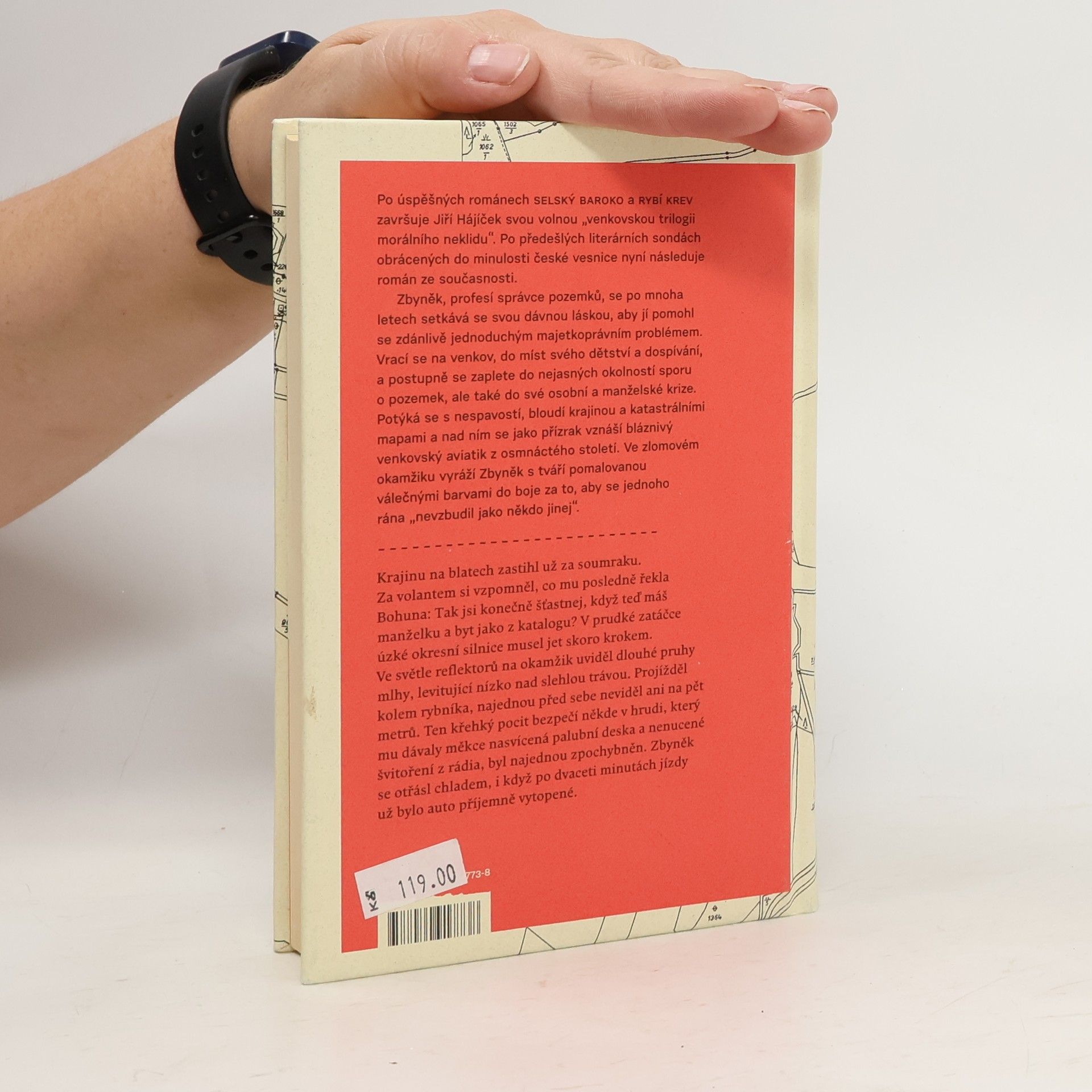 Po úspěšných románech Selský baroko a Rybí krev završuje Jiří Hájíček svou volnou „venkovskou trilogii morálního neklidu“. Předešlé literární sondy obrácené do minulosti české vesnice následuje nyní román ze současnosti. Opět silný příběh, v němž kromě lidí tentokrát hrají důležitou roli pozemky — zděděná pole a spory kolem jejich vlastnictví. Venkovská krajina jihočeských blat je vůbec v textu silně přítomna a kromě jedinečné atmosféry dodává příběhu i historický kontext a také nepřímo vstupuje do osudů hlavních postav. Zbyněk, profesí správce pozemků, se po mnoha letech setkává se svou dávnou láskou, aby jí pomohl se zdánlivě jednoduchým majetkoprávním problémem. Vrací se na venkov, na místa svého dětství a dospívání, a zamotává se do nejasných okolností pozemkového sporu, ale také do osobní a manželské krize. Potýká se s nespavostí, bloudí krajinou a katastrálními mapami a nad ním se jako přízrak vznáší bláznivý venkovský aviatik z osmnáctého století. Ve zlomovém okamžiku jde Zbyněk s tváří pomalovanou válečnými barvami do boje. Za to, co považuje za správné, za sny dětství a „aby se jednoho rána neprobudil jako někdo jiný“.