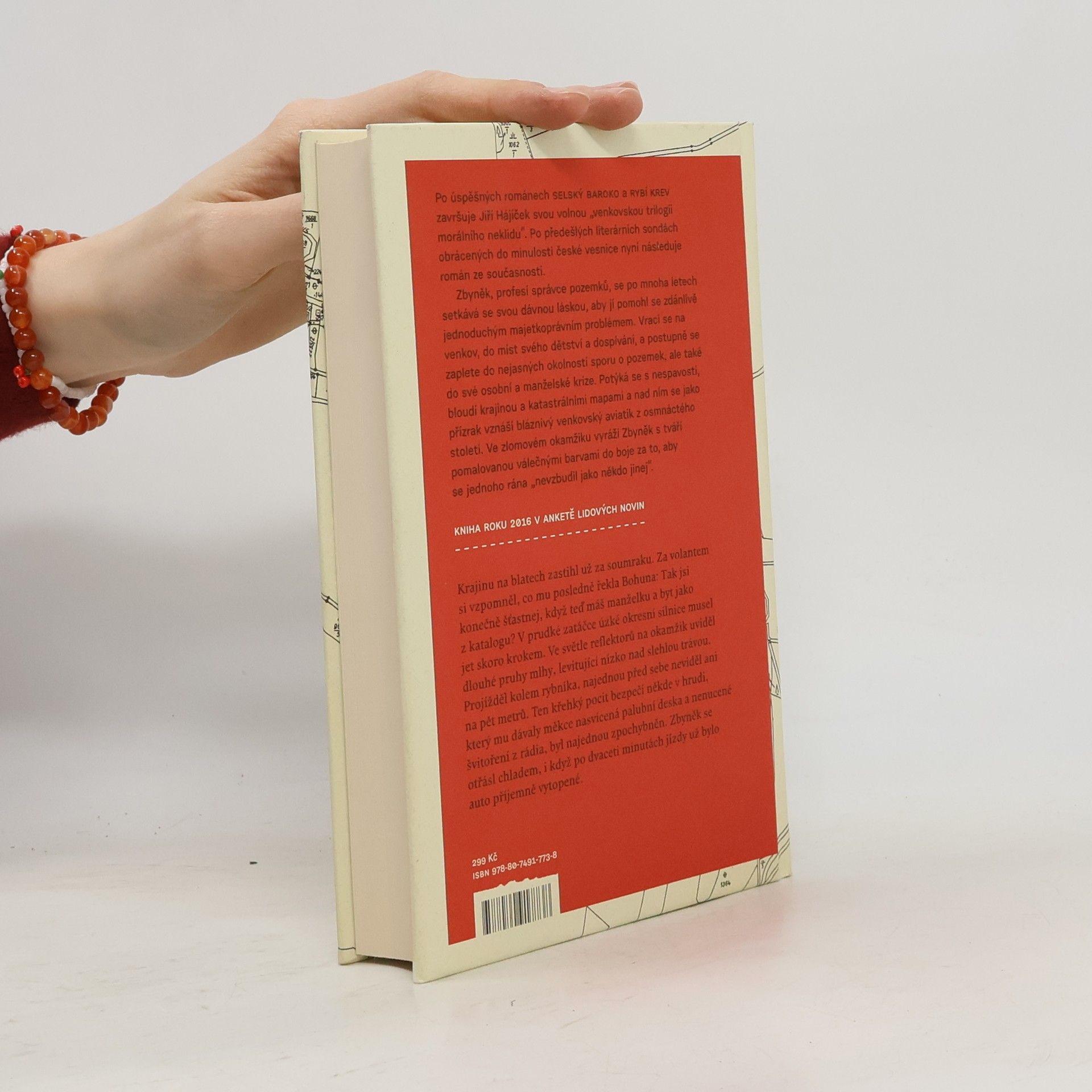 Po úspěšných románech Selský baroko a Rybí krev završuje Jiří Hájíček svou volnou „venkovskou trilogii morálního neklidu“. Předešlé literární sondy obrácené do minulosti české vesnice následuje nyní román ze současnosti. Opět silný příběh, v němž kromě lidí tentokrát hrají důležitou roli pozemky — zděděná pole a spory kolem jejich vlastnictví. Venkovská krajina jihočeských blat je vůbec v textu silně přítomna a kromě jedinečné atmosféry dodává příběhu i historický kontext a také nepřímo vstupuje do osudů hlavních postav. Zbyněk, profesí správce pozemků, se po mnoha letech setkává se svou dávnou láskou, aby jí pomohl se zdánlivě jednoduchým majetkoprávním problémem. Vrací se na venkov, na místa svého dětství a dospívání, a zamotává se do nejasných okolností pozemkového sporu, ale také do osobní a manželské krize. Potýká se s nespavostí, bloudí krajinou a katastrálními mapami a nad ním se jako přízrak vznáší bláznivý venkovský aviatik z osmnáctého století. Ve zlomovém okamžiku jde Zbyněk s tváří pomalovanou válečnými barvami do boje. Za to, co považuje za správné, za sny dětství a „aby se jednoho rána neprobudil jako někdo jiný“.