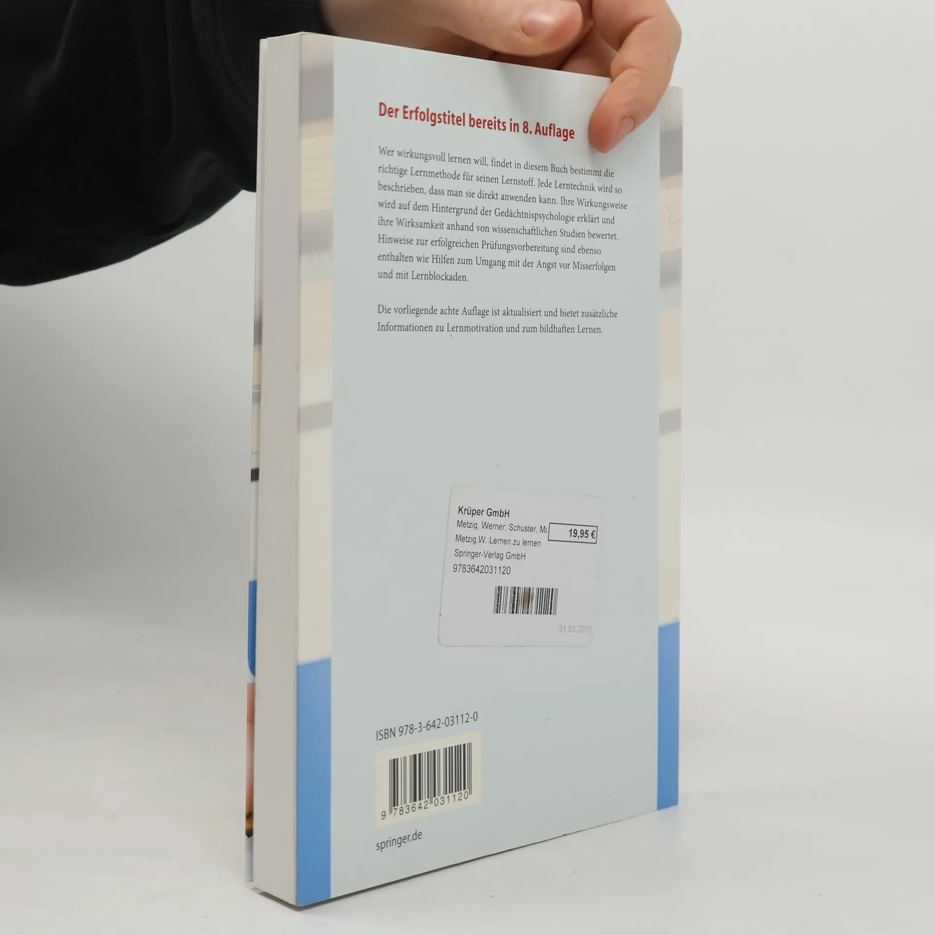 Wer effektiv lernen will, benötigt die passende Lernmethode für den jeweiligen Lernstoff. Die Autoren beschreiben verschiedene Lerntechniken so, dass sie direkt angewendet werden können. Ihre Wirkweise erklären sie gedächtnispsychologisch, die Wirksamkeit wird aufgrund wissenschaftlicher Studien bewertet. Der Band enthält Hinweise zur erfolgreichen Prüfungsvorbereitung und Tipps zum Umgang mit der Angst vor Misserfolgen und mit Lernblockaden. Die 8., aktualisierte Auflage bietet zusätzliche Informationen zur Lernmotivation und zum bildhaften Lernen.