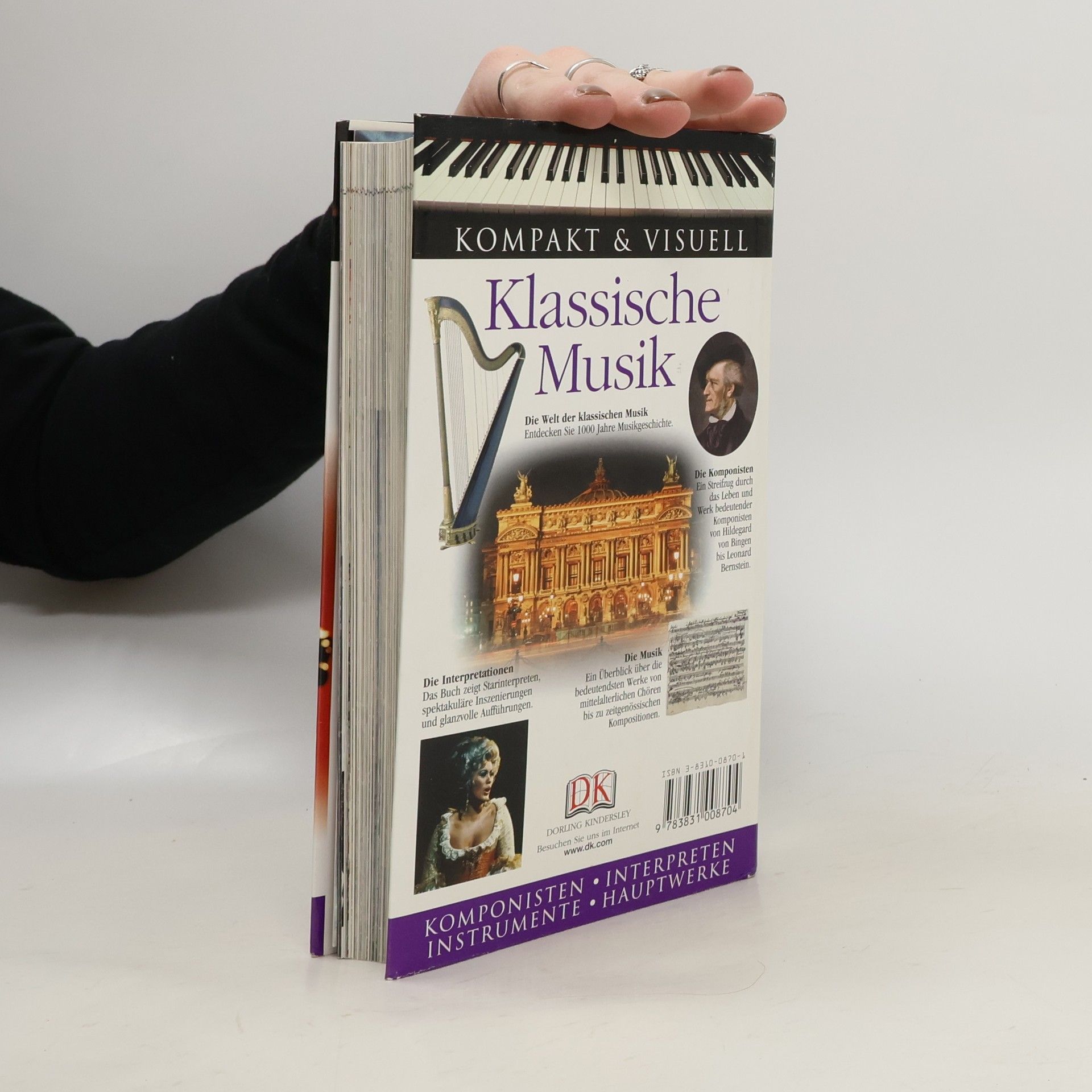 1000 Jahre Musikgeschichte in einem Band – von den gregorianischen Gesängen bis zu Filmmusik des 20. Jahrhunderts. Dieses kompakte Handbuch bietet einen fachkundigen Überblick über die Geschichte der klassischen Musik. Nach einer thematischen Einführung in Noten- und Harmonielehre sowie in die Aufführungspraxis liefert ein enzyklopädischer Katalog detaillierte Profile aller großen Komponisten und Interpreten mit Biografie, Charakteristika und Werkporträts. Zum Nachschlagen und Schmökern - für Liebhaber und Kenner, Musikschüler und -studenten. Wissen kompakt in bewährter Dorling-Kindersley-Qualität.