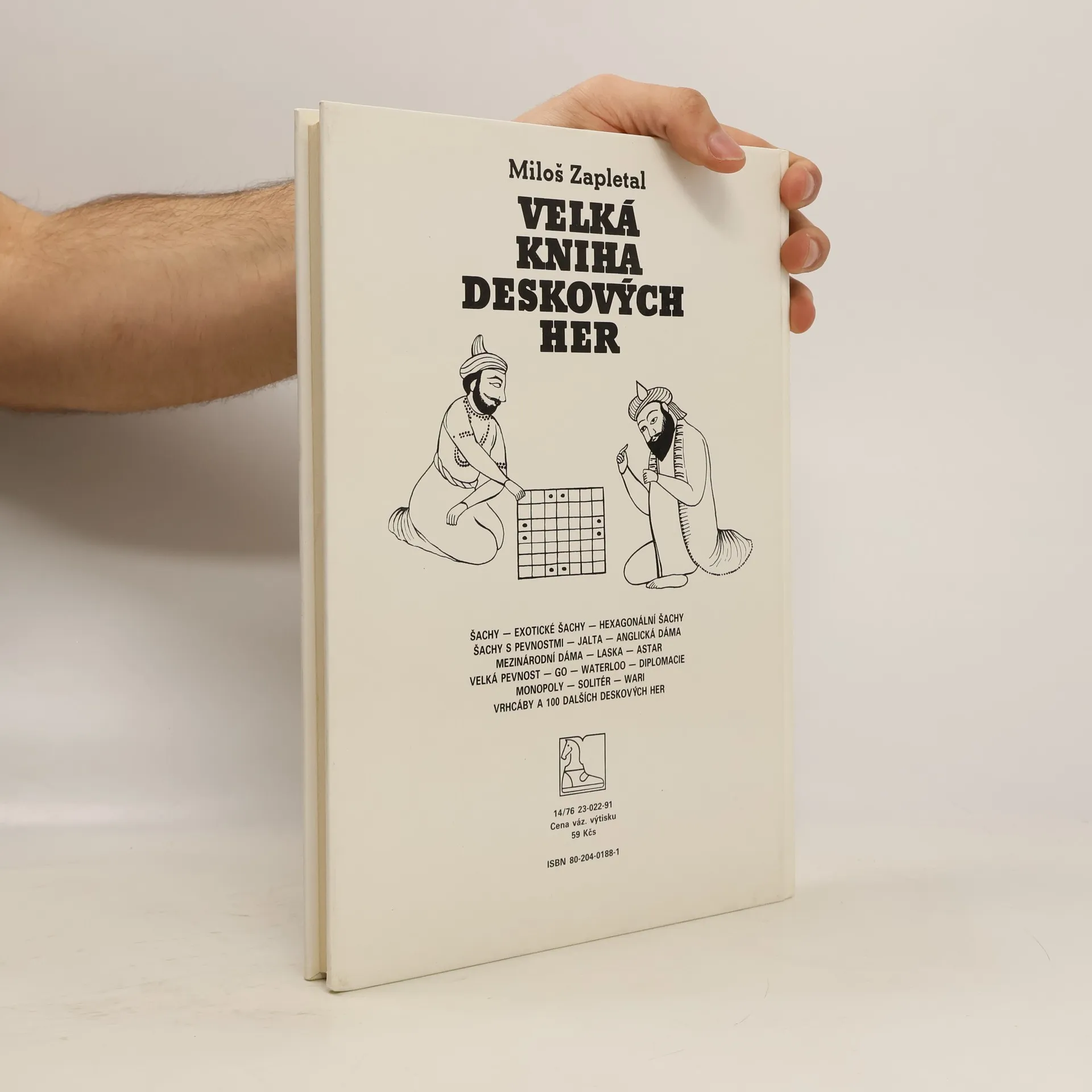 Knihu ilustrovala Alena Zapletalová podle historických pramenů.. Obsahuje Šachy, Exotické šachy, Šachy s pevnostmi, Jalta, Anglická dáma, Mezinároidní dáma, Laska, Astar, Velká pevnost, GO, Waterloo, Diploémacie, Monopoly, Solitér, Wari Vrhcáby a 100 dalších deskových her.Kniha je rozdělena do tří části 1.část - Strategické hry, 2.část. - Poziční hry a 3. část - Závodivé hry... celý text