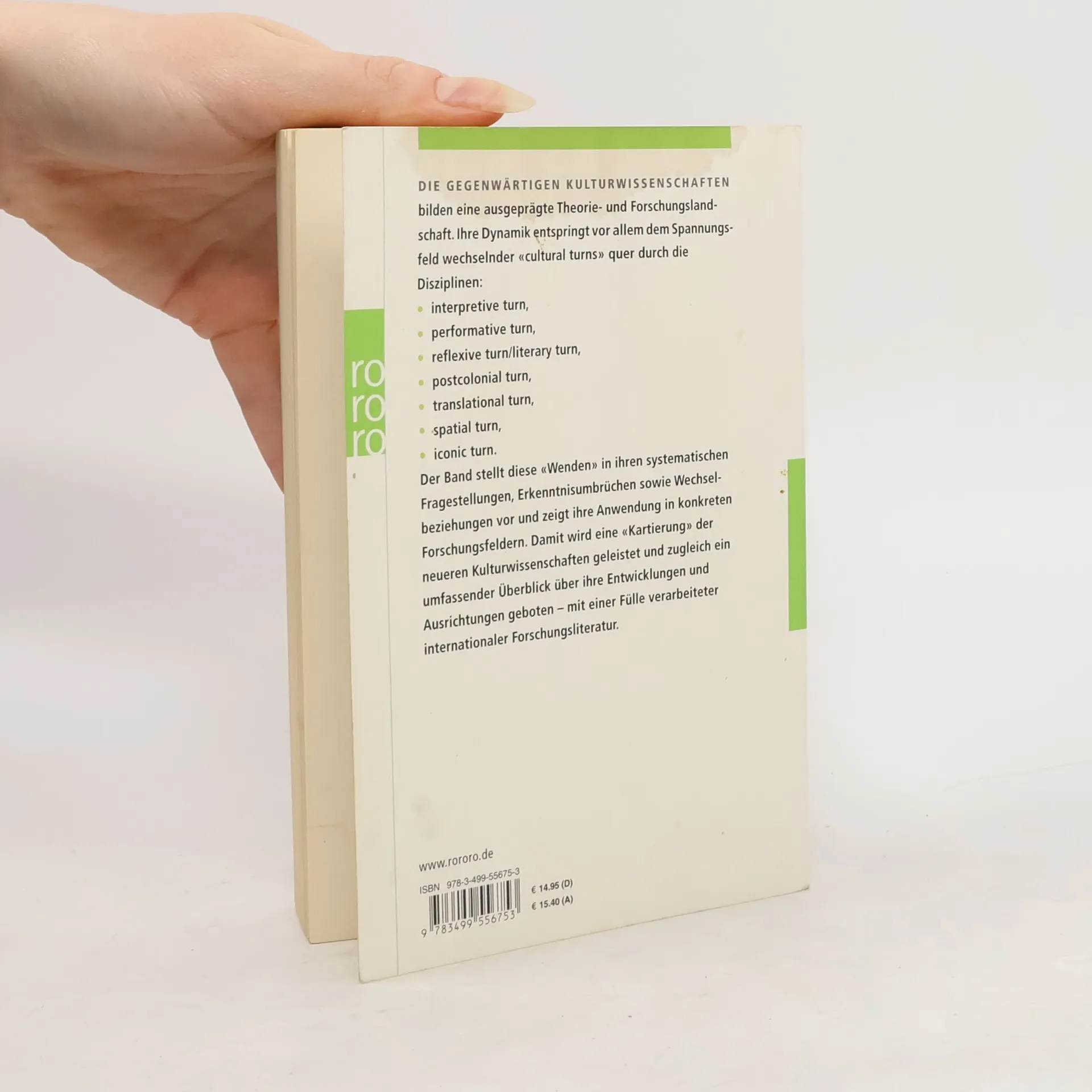 Die gegenwärtigen Kulturwissenschaften bilden eine ausgeprägte Theorie- und Forschungslandschaft. Ihre Dynamik entspringt vor allem dem Spannungsfeld wechselnder «cultural turns» quer durch die Disziplinen: - interpretive turn - performative turn, - reflexive turn/literary turn, - postcolonial turn, - translational turn, - spatial turn, - iconic turn. Der Band stellt diese «Wenden» in ihren systematischen Fragestellungen, Erkenntnisumbrüchen sowie Wechselbeziehungen vor und zeigt ihre Anwendung in konkreten Forschungsfeldern. Damit wird eine «Kartierung» der neueren Kulturwissenschaften geleistet und zugleich ein umfassender Überblick über ihre Entwicklungen und Ausrichtungen geboten - mit einer Fülle verarbeiteter internationaler Forschungsliteratur.