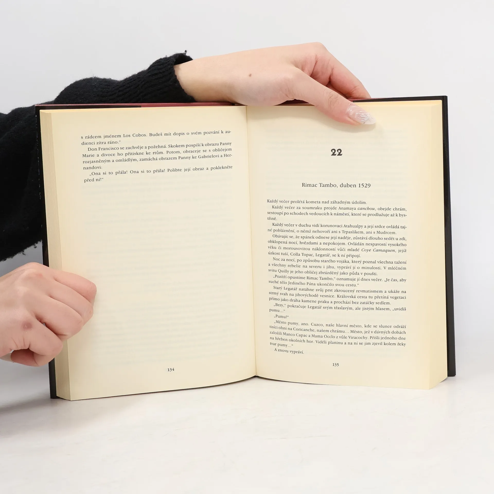 První část trilogie. Příběh pozoruhodné lásky incké princezny a španělského důstojníka během neuvěřitelné cesty kapitána Pizarra za zlatem Inků a následným dobytím jejich říše. – Jedenáctý vládce Inků umírá. Ale místo aby ustanovil svého následníka, svěřuje během své poslední noci tajemství své říše záhadné dívce s modrýma očima. V té době se náhle ,,vynořuje z oceánu“ skupina bílých vousatých cizinců, vyslaná Karlem V. a připravená nemilosrdně splnit svůj cíl – najít zlato pro sebe a svého krále. – Historický román, nepostrádající napětí ani romantiku, vychází ze skutečného dobového prostředí.