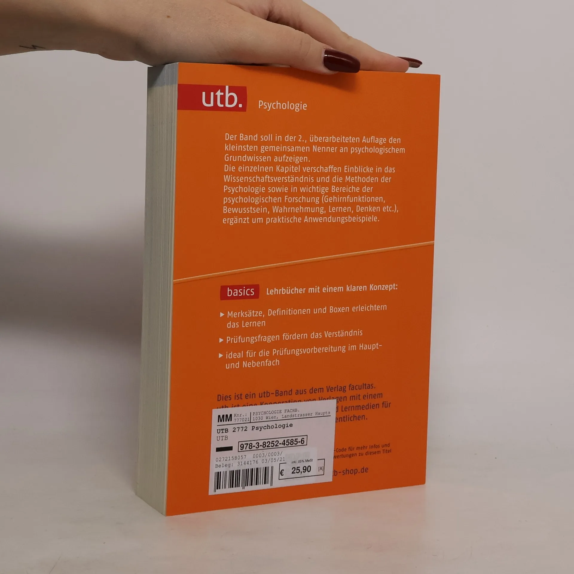 Der Band soll in der 2., überarbeiteten Auflage den kleinsten gemeinsamen Nenner an psychologischem Grundwissen aufzeigen. Die einzelnen Kapitel verschaffen Einblicke in das Wissenschaftsverständnis und die Methoden der Psychologie sowie in wichtige Bereiche der psychologischen Forschung (Gehirnfunktionen, Bewusstsein, Wahrnehmung, Lernen, Denken etc.), ergänzt um praktische Anwendungsbeispiele.