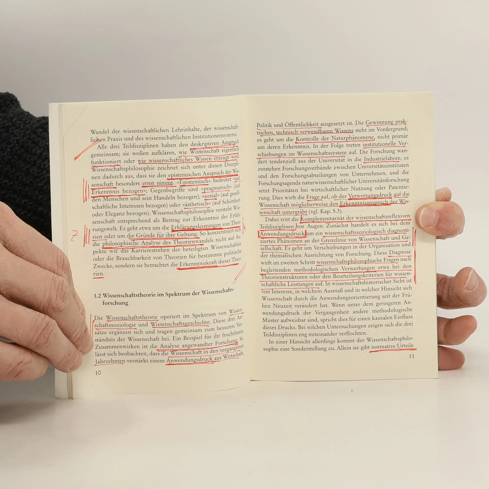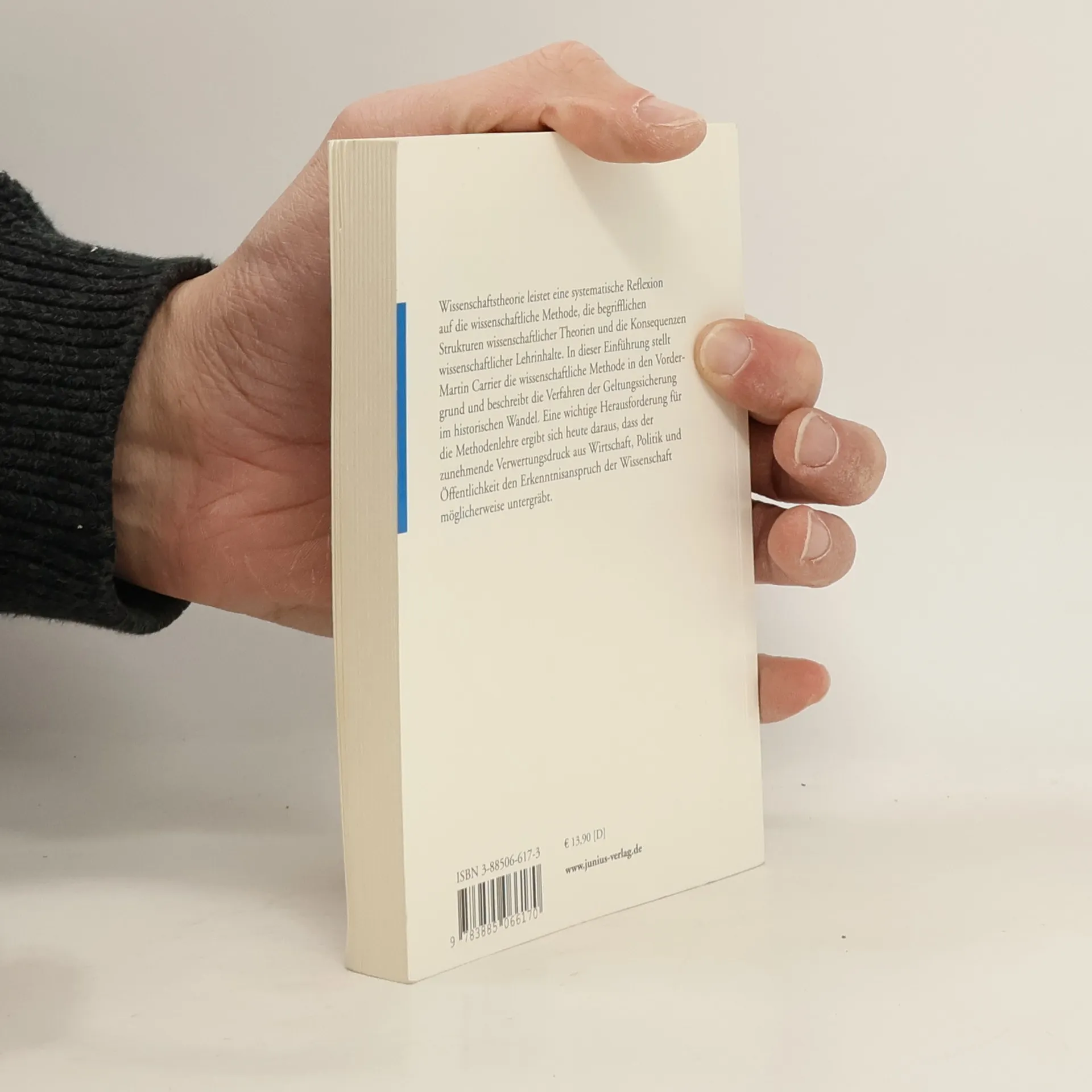 Wissenschaftliches Wissen ist besonders streng geprüftes Wissen, das sich von der bloßen Meinung abheben soll. Dieser Anspruch beruht auf der methodischen Prüfung wissenschaftlicher Behauptungen an der Erfahrung. Wesentlicher Teil der Wissenschaftstheorie ist die Methodenlehre, die sich damit befasst, welche Verfahren der Prüfung in der Wissenschaft akzeptiert sind und in welchem Zusammenhang sie mit dem wissenschaftlichen Erkenntnisanspruch stehen. Im Mittelpunkt dieser Einführung stehen daher die Verfahren der Geltungssicherung in der Wissenschaft in ihrem historischen Wandel. Wichtige Herausforderungen für die Methodenlehre ergeben sich dabei u. a. daraus, dass die Beobachtungsbasis von Theorien selbst wieder durch Anwendung von Theorien zustande kommt und dass Wissenschaft ihr Erkenntnisziel im Spannungsfeld von gesellschaftlichen Nutzenerwartungen und Wertvorgaben verfolgen muss.