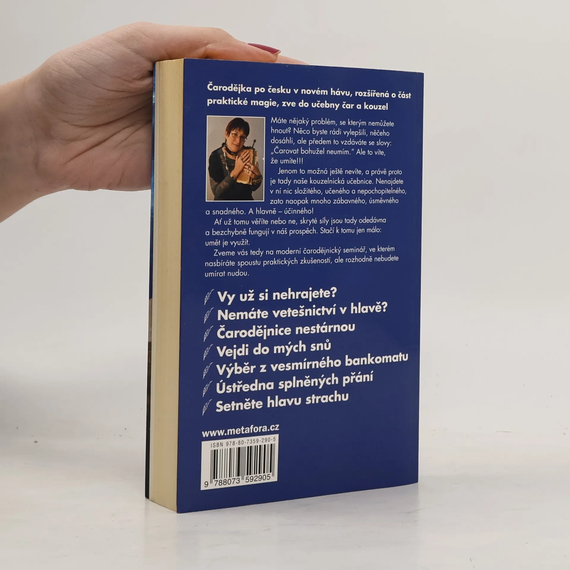 Máte nějaký problém, se kterým nemůžete hnout?Něco byste rádi vylepšili, něčeho dosáhli, ale předem to vzdáváte se slovy: "Čarovat bohužel neumím." Ale to víte, že umíte!!! Jenom to možná ještě nevíte, a právě proto je tady naše kouzelnická učebnice. Nenajdete v ní nic složitého, učeného a nepochopitelného, zato naopak mnoho zábavného, úsměvného a snadného. A hlavně - účinného! Ať už tomu věříte nebo ne, skryté síly jsou tady odedávna a bezchybně fungují v náš prospěch. Stačí k tomu jen málo: umět je využít. Zveme vás tedy na moderní čarodějnický seminář, ve kterém nasbíráte spoustu praktických zkušeností, ale rozhodně nebudete umírat nudou.