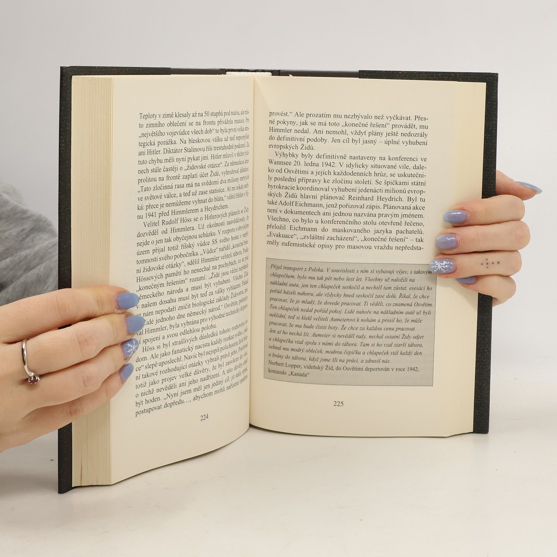 Historie pronásledování a fyzické likvidace Židů za 2. světové války. Literatura faktu. Tematicky členěný text popisuje proces "konečného řešení židovské otázky" od postupné společenské izolace a lidské degradace židovského obyvatelstva po jeho vyvražďování v koncentračních táborech. Plastický a velmi působivý obraz snad nejhorší kapitoly dějin 20. stol. čerpá z materiálů, dokumentů a svědectví, která nashromáždili dokumentaristé pro stejnojmenný televizní seriál. Marginálie v textu obsahují autentické výpovědi pamětníků.