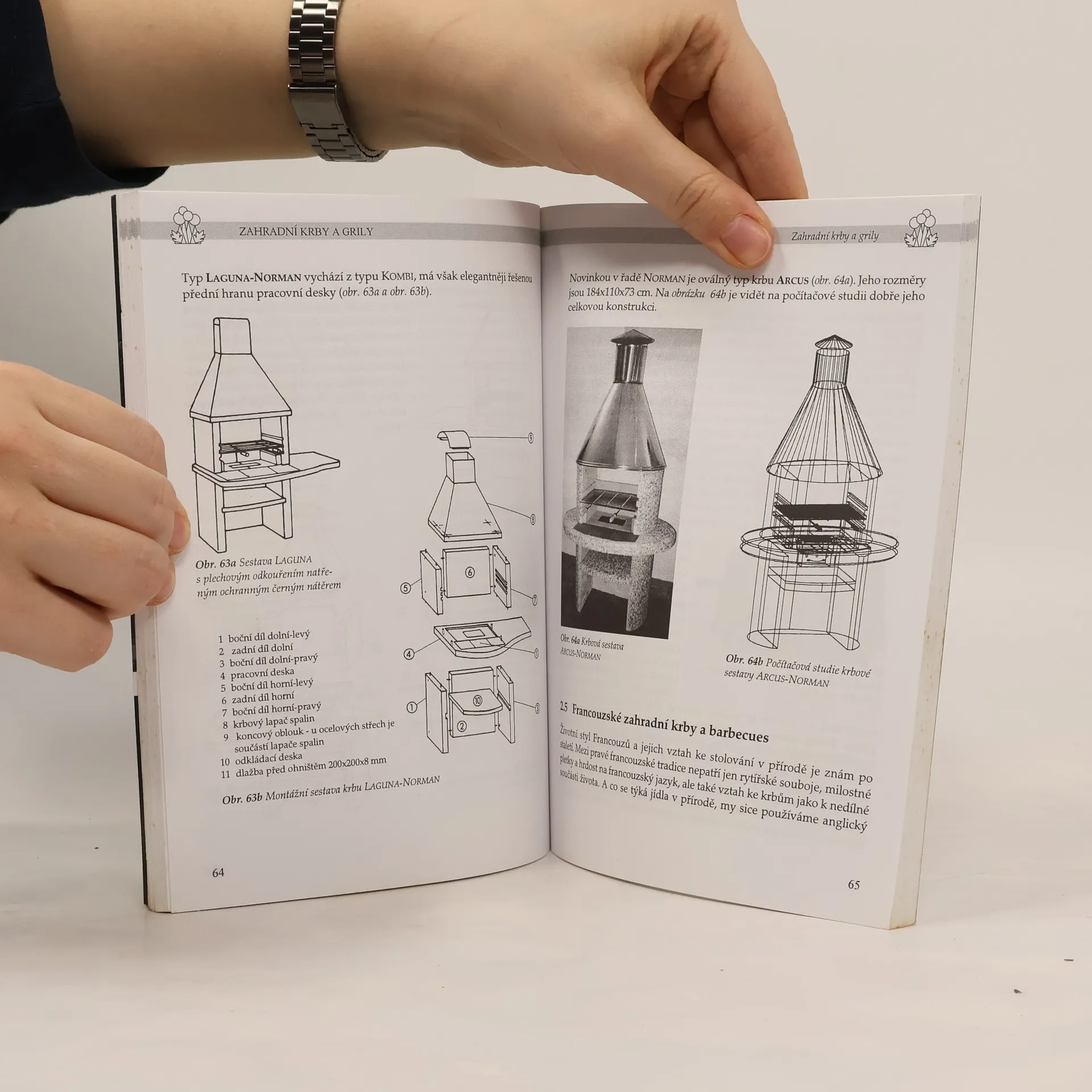 Obsah je rozdělen do šesti kapitol, a k nim jsou přidány dvě přílohy. 1.) Zahrada jako prostor pro rekreaci a setkávání 2.) Zahradní krby a grily 3.) Společenské zahradní krby a sestavy 4.) Krby přistavěné k objektu 5.) Grily na plyn 6.) Udírny Příloha 1: Recepty na grilování Příloha 2: Uzení masa, ryb a drůbeže