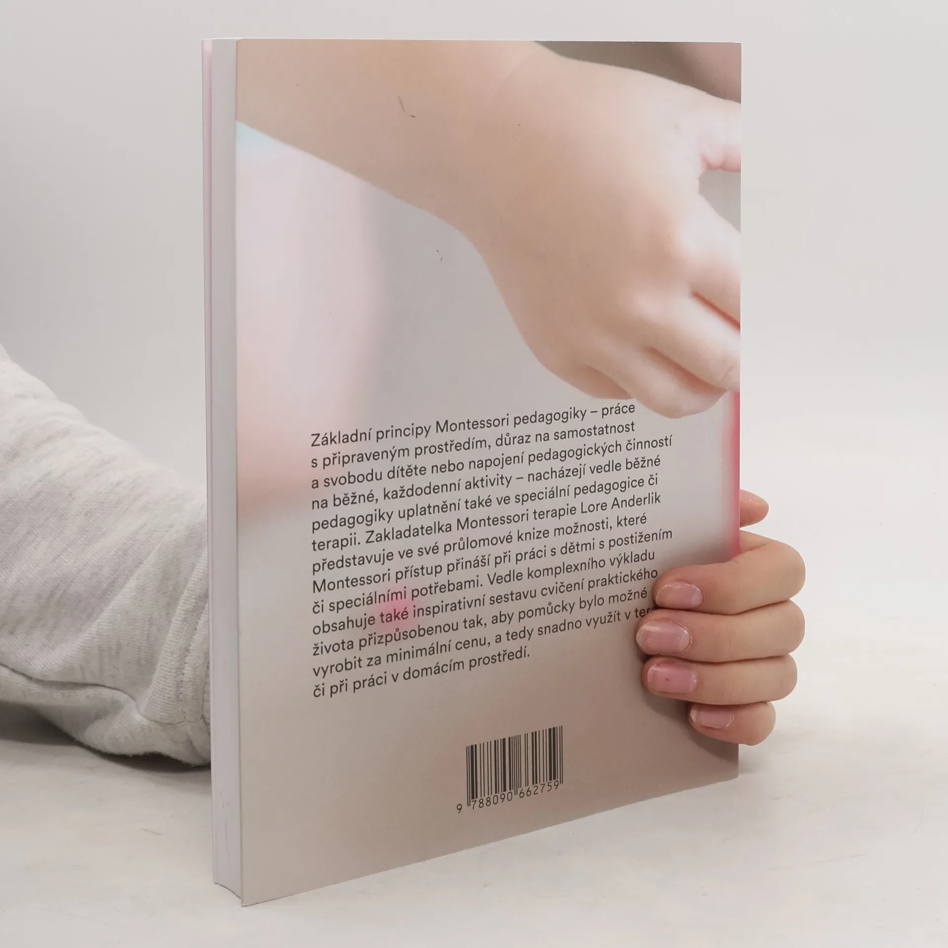 Základní principy Montessori pedagogiky - práce s připraveným prostředím, důraz na samostatnost a svobodu dítěte nebo napojení pedagogických činností na běžné, každodenní aktivity - nacházejí vedle běžné pedagogiky uplatnění také ve speciální pedagogice či terapii. Zakladatelka Montessori terapie Lore Anderlik představuje ve své průlomové knize možnosti, které Montessori přístup přináší při práci s dětmi s postižením či speciálními potřebami. Vedle komplexního výkladu obsahuje také inspirativní sestavu cvičení praktického života přizpůsobenou tak, aby pomůcky bylo možné vyrobit za minimální cenu, a tedy snadno využít v terapii či při práci v domácím prostředí.