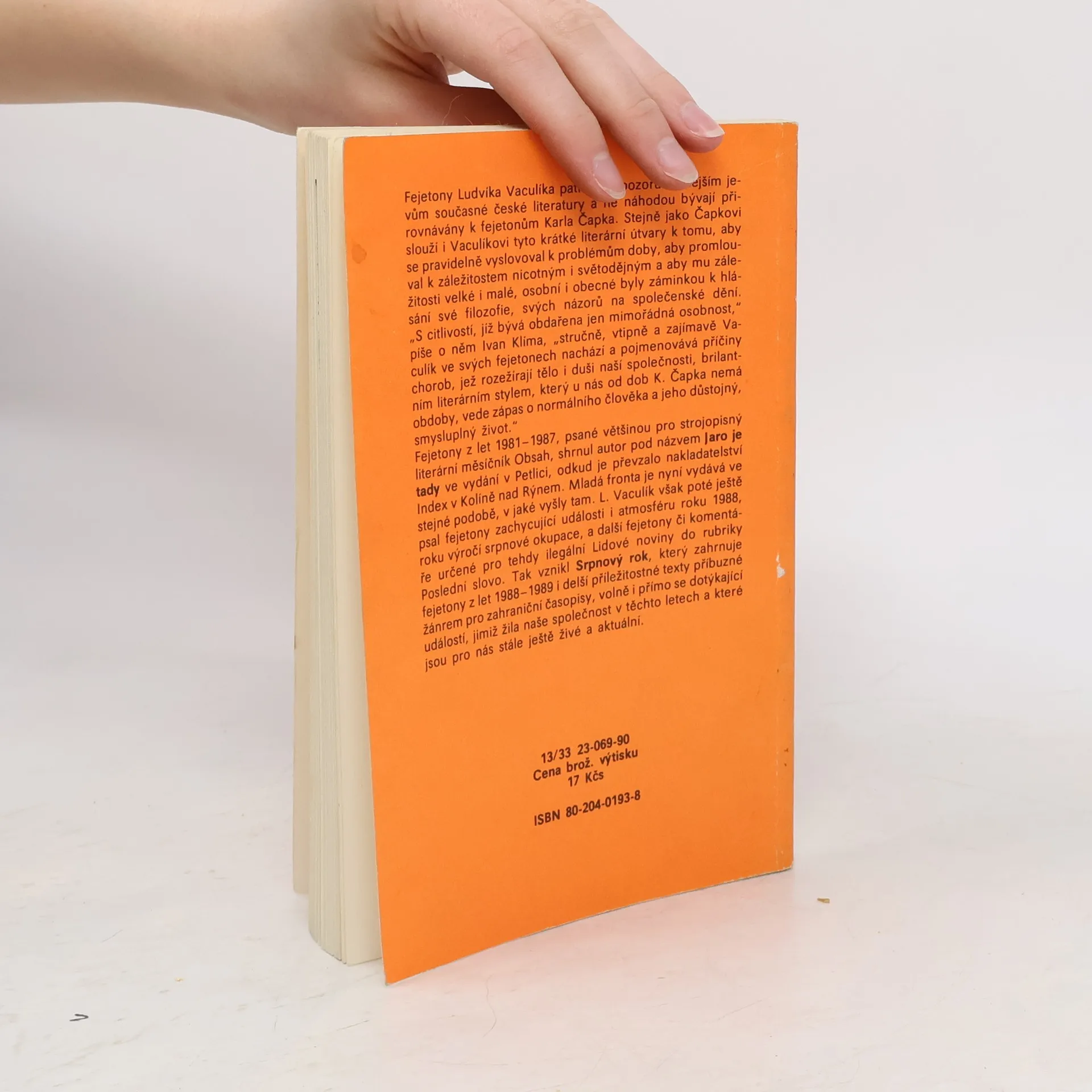 Sbírka fejetonů z let 1988 - 1989, kterými autor vyjadřoval svůj názor na společenské dění. První vydání.