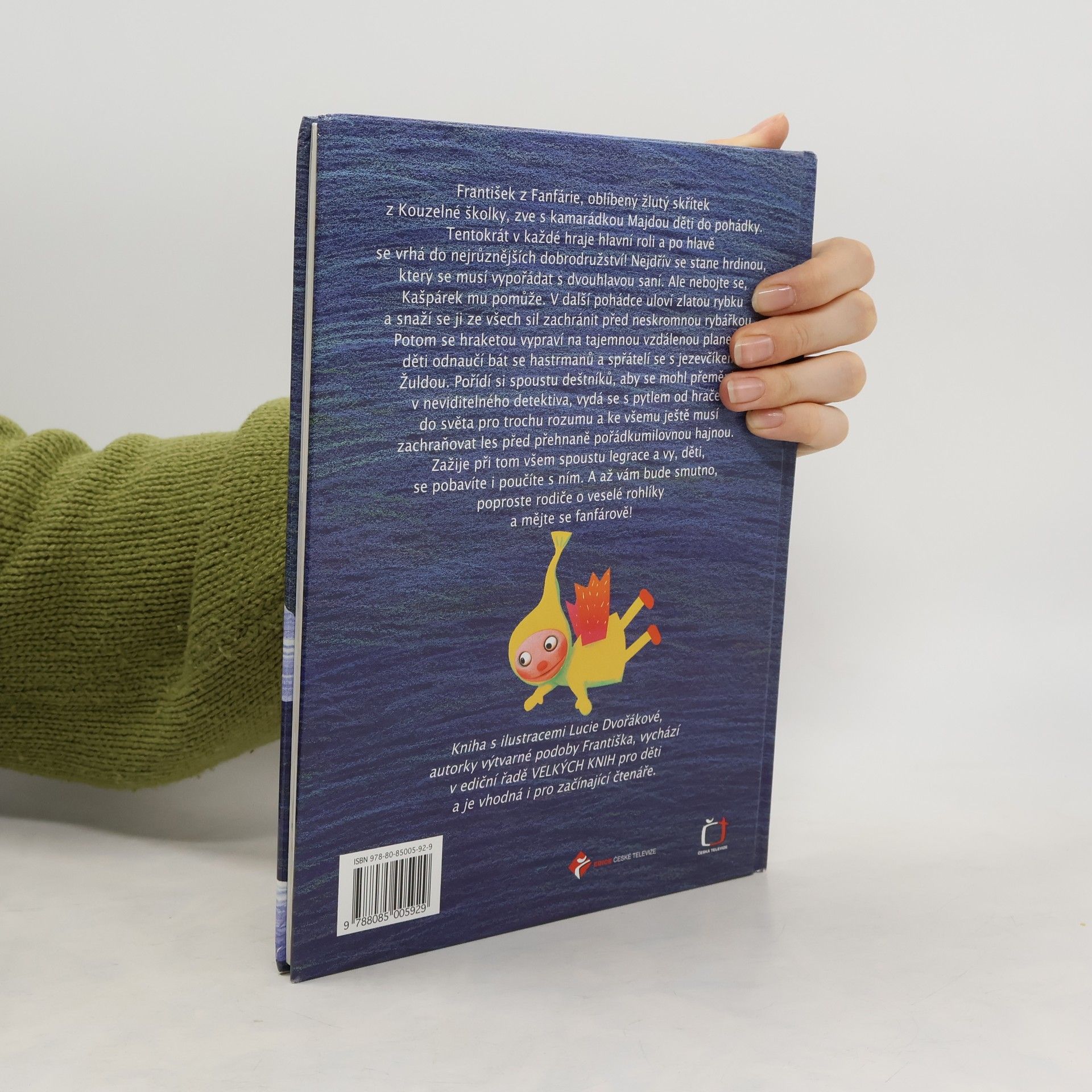 František z Fanfárie, oblíbený žlutý skřítek z Kouzelné školky, zve s kamarádkou Majdou děti do pohádky. Tentokrát v každé hraje hlavní roli a po hlavě se vrhá do nejrůznějších dobrodružství! Nejdřív se stane hrdinou, který se musí vypořádat s dvouhlavou saní. Ale nebojte se, Kašpárek mu pomůže. V další pohádce uloví zlatou rybku a snaží se ji ze všech sil zachránit před neskromnou rybářkou. Potom se hraketou vypraví na tajemnou vzdálenou planetu, děti odnaučí bát se hastrmanů a spřátelí se s jezevčíkem Žuldou. Pořídí si spoustu deštníků, aby se mohl přeměnit v neviditelného detektiva, vydá se s pytlem od hraček do světa pro trochu rozumu a ke všemu ještě musí zachraňovat les před přehnaně pořádkumilovnou hajnou.Zažije při tom všem spoustu legrace a vy, děti, se pobavíte i poučíte s ním. A až vám bude smutno, poproste rodiče o veselé rohlíky a mějte se fanfárově!Kniha s původními ilustracemi Lucie Dvořákové, autorky výtvarné podoby Františka, vyjde v ediční řadě VELKÝCH KNIH pro děti a je vhodná i pro začínající čtenáře.