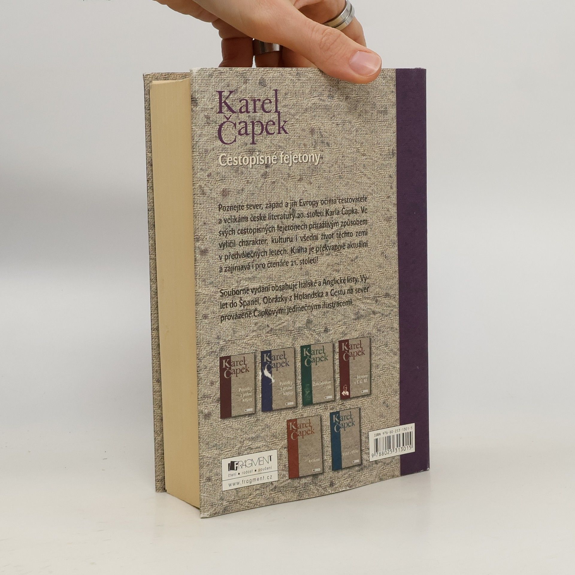 Poznejte sever, západ a jih Evropy očima cestovatele a velikána české literatury 20. století Karla Čapka. Ve svých cestopisných fejetonech přitažlivým způsobem vylíčil charakter, kulturu i všední život těchto zemí v předválečných letech. Kniha je překvapivě aktuální a zajímavá i pro čtenáře 21. století! Souborné vydání obsahuje Italské a Anglické listy, Výlet do Španěl, Obrázky z Holandska a Cestu na sever provázené Čapkovými jedinečnými ilustracemi.