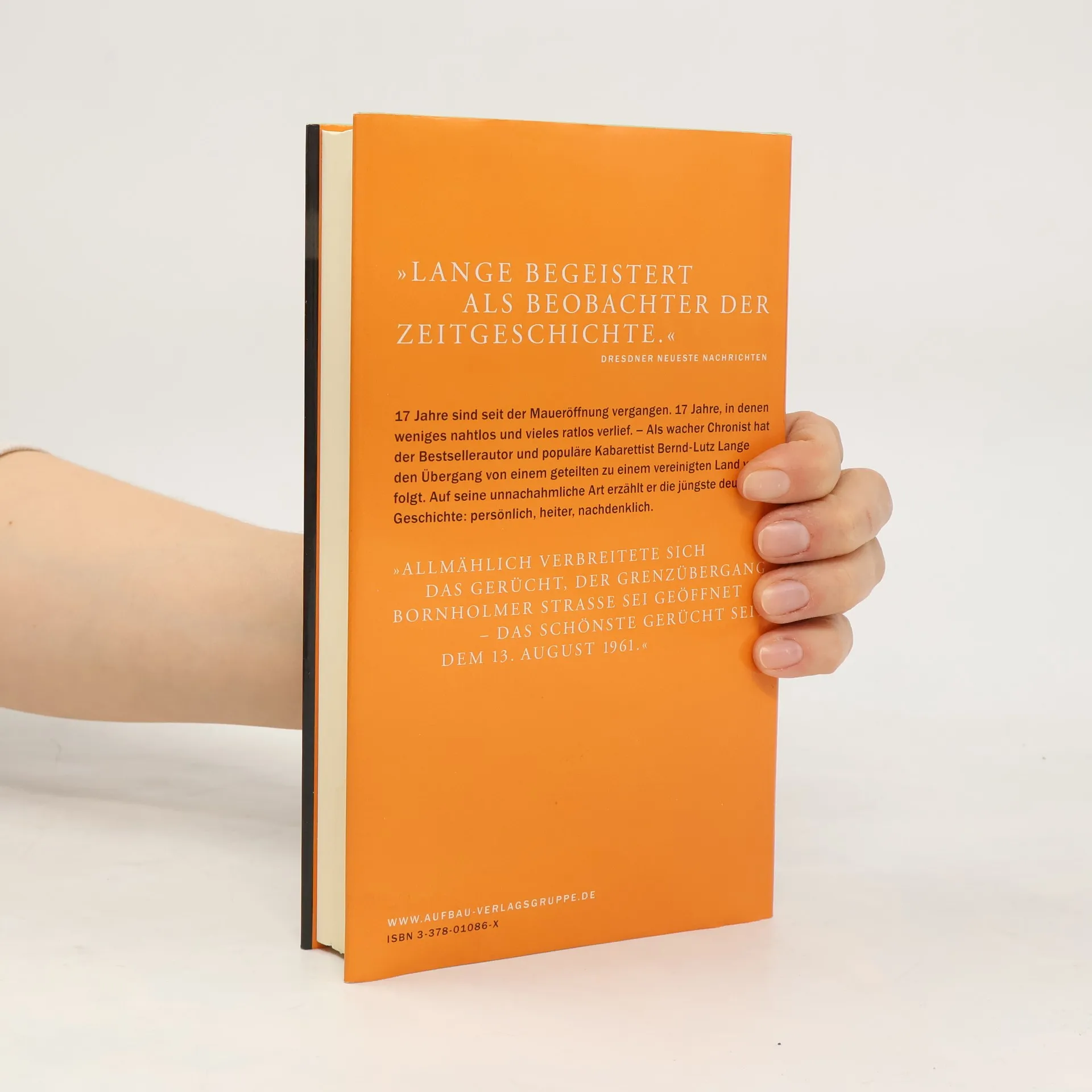 Siebzehn Jahre sind seit der Maueröffnung vergangen. Als wacher und heiterer Chronist verfolgt Kabarettist und Bestsellerautor Bernd-Lutz Lange (äMagermilch und lange Strümpfeä) den Übergang vom geteilten zum vereinigten Land