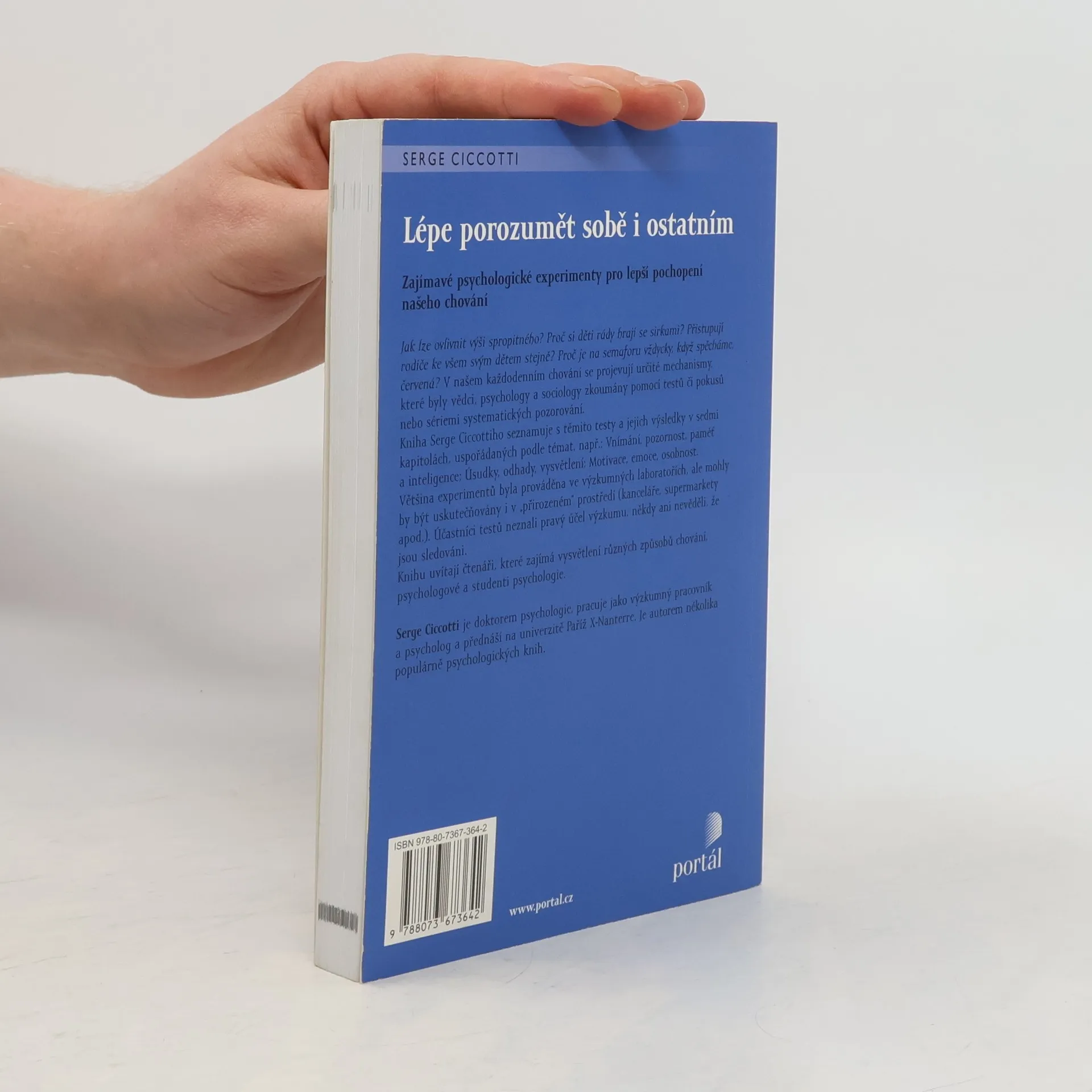 Zajímavé psychologické experimenty pro lepší pochopení našeho chování Jak lze ovlivnit výši spropitného? Proč si děti rády hrají se sirkami? Proč se říká, že ženy jsou náchylnější k pomlouvání než muži? V našem každodenním chování se projevují určité mechanismy, které byly vědci, psychology a sociology zkoumány pomocí testů nebo sériemi systematických pozorování. Kniha seznamuje s těmito testy a jejich výsledky v kapitolách, uspořádaných podle témat, např.: Vnímání, pozornost, paměť a inteligence; Úsudky, odhady, vysvětlení; Motivace, emoce, osobnost a další oblasti. Knihu uvítají čtenáři, které zajímá vysvětlení různých způsobů chování, psychologové a studenti psychologie.