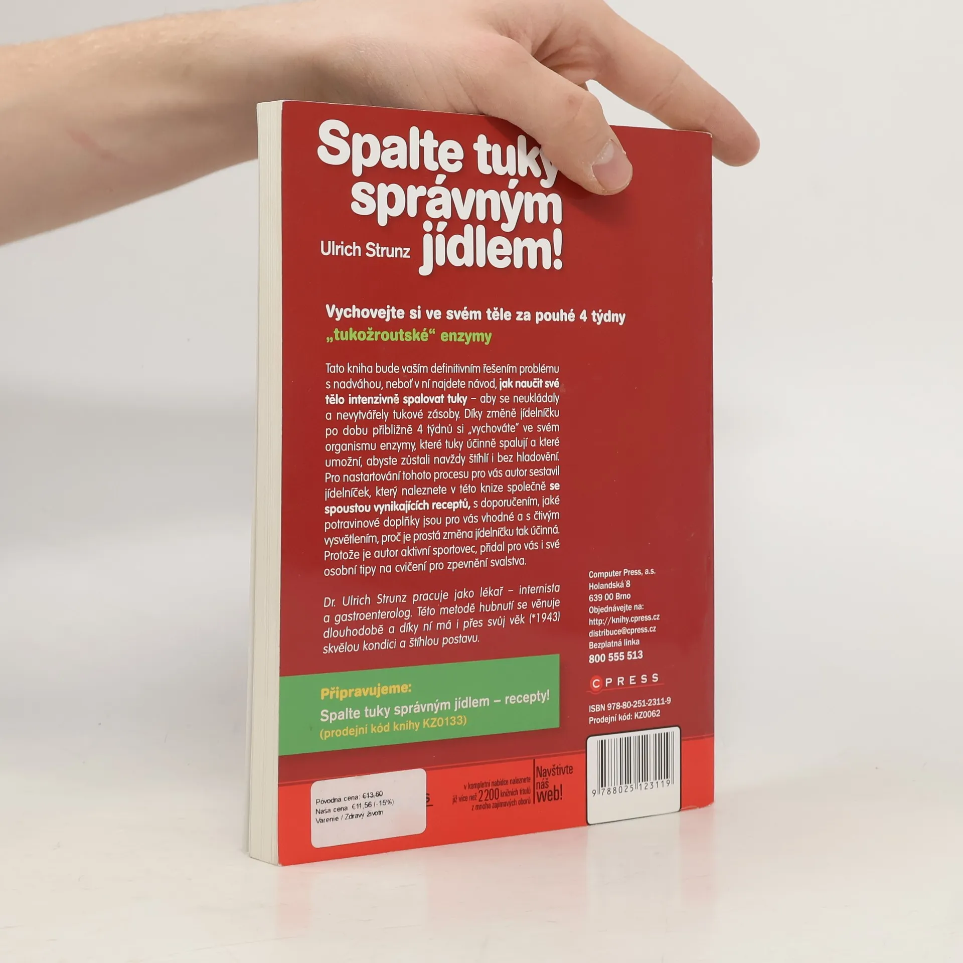 Vychovejte si ve svém těle za pouhé čtyři týdny „tukožroutské“ enzymy. Tato kniha bude vaším definitivním řešením problému s nadváhou, neboť v ní najdete návod, jak naučit své tělo intenzivně spalovat tuky – aby se neukládaly a nevytvářely tukové zásoby. Díky změně jídelníčku po dobu přibližně 4 týdnů si „vychováte” ve svém organismu enzymy, které tuky účinně spalují, a které umožní abyste zůstali navždy štíhlí i bez hladovění. Pro nastartování tohoto procesu pro vás autor sestavil jídelníček, který naleznete v této knize společně se spoustou vynikajících receptů, s doporučením, jaké potravinové doplňky jsou pro vás vhodné a s čtivým vysvětlením, proč je prostá změna jídelníčku tak účinná. Protože je autor aktivní sportovec, přidal pro vás i své osobní tipy na cvičení pro zpevnění svalstva. Dr. Ulrich Strunz pracuje jako lékař – internista a gastroenterolog. Této metodě hubnutí se věnuje dlouhodobě a díky ní má i přes svůj věk (*1943) skvělou kondici a štíhlou postavu.