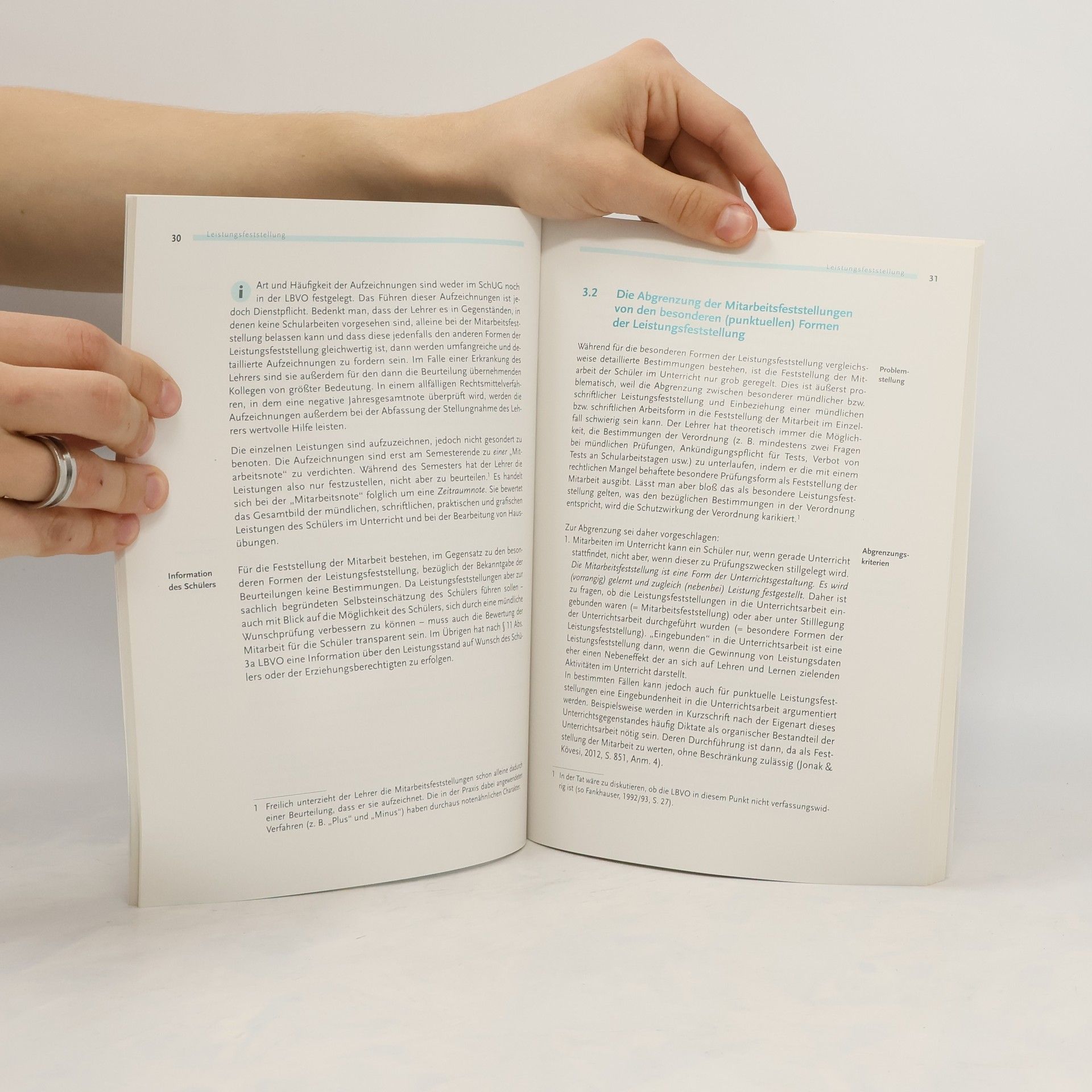 Das Buch bietet eine verständliche Einführung in die rechtlichen Grundlagen der schulischen Leistungsbeurteilung. Es enthält wichtige Bestimmungen aus dem Schulunterrichtsgesetz sowie der Leistungsbeurteilungsverordnung und bietet praxisnahe Empfehlungen zur Prüfungsgestaltung und Notengebung. Es werden zentrale Fragen behandelt, wie die geeigneten Prüfungsformen und die Gewichtung der Leistungsfeststellungen für die Semester- oder Jahresnote. Zudem wird erörtert, ob die Mitarbeitsfeststellung ausschließlich auf „Bankfragen“ basieren darf, und die Unterscheidung zwischen schriftlicher Prüfung und Test. Auch die Kriterien für die Entscheidungen der Beurteilungskonferenz, insbesondere bei der Frage des Aufstiegs trotz „Nicht genügend“, werden thematisiert. Des Weiteren werden Aspekte im Zusammenhang mit Berufungen behandelt. Das Buch dient als Nachschlagewerk für Lehrer und als Lernhilfe für die Lehrerausbildung, richtet sich jedoch auch an Eltern und Schüler, die sich intensiver mit dem Thema auseinandersetzen möchten. Die Inhalte umfassen Leistungsfeststellung und -beurteilung, Formen und Grundsätze der Leistungsfeststellung, mündliche Prüfungen, Empfehlungen zum mündlichen Prüfen, schriftliche Überprüfungen sowie Standards und Objektivität in der Leistungsbeurteilung.