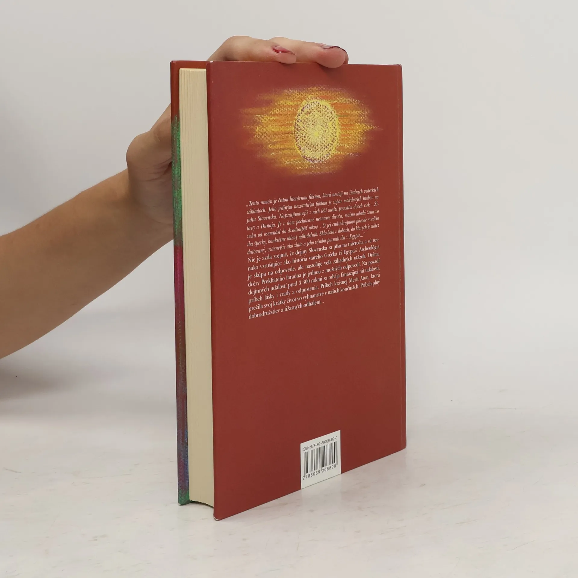 Tento román je čistou fikciou, ktorá nestojí na žiadnych vedeckých základoch. Jeho jediným nezvratným faktom je zopár mohylových hrobov na juhu Slovenska. Najzaujímavejší z nich leží medzi povodím dvoch riek — Žitavy a Dunaja. Je v ňom pochované neznáme dievča, možno mladá žena vo veku od osemnásť do dvadsaťpäť rokov… O jej cudzokrajnom pôvode svedčia iba šperky, konkrétne sklený náhrdelník. Sklo bolo v dobách, do ktorých je nález datovaný, vzácnejšie ako zlato a jeho výrobu poznali iba v Egypte…" Nie je azda zrejmé, že dejiny Slovenska sa píšu na tisícročia a sú rovnako vzrušujúce ako história starého Grécka či Egypta? Archeológia je skúpa na odpovede, ale nastoľuje veľa záhadných otázok. Dráma dcéry Prekliateho faraóna je jednou z možných odpovedí. Na pozadí dejinných udalostí pred 3 300 rokmi sa odvíja niť udalostí, príbeh lásky i zrady a odpustenia. Príbeh krásnej Merit Aton, ktorá prežila svoj krátky život vo vyhnanstve v našich končinách. Príbeh plný dobrodružstiev a úžasných odhalení