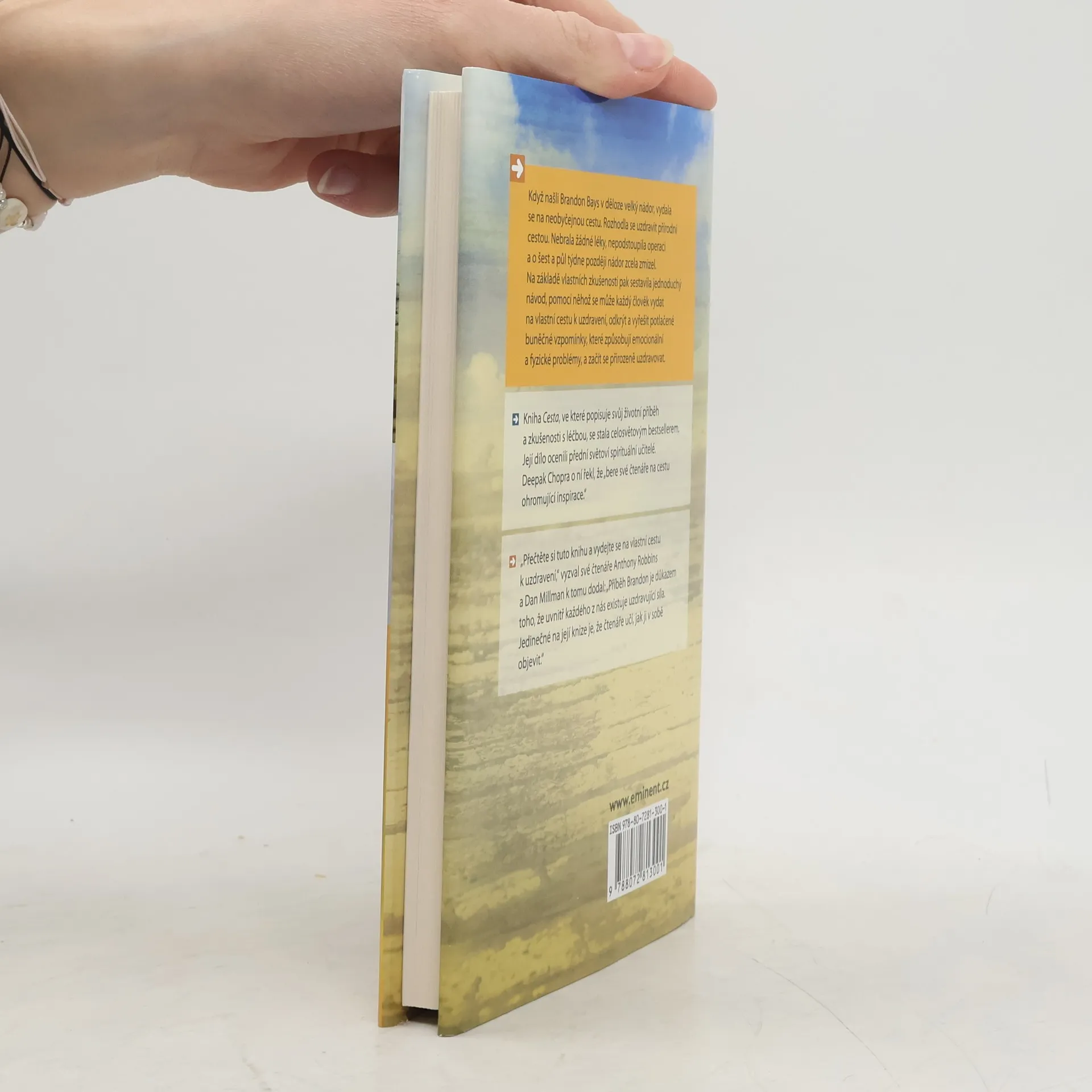 Když našli Brandon Bays v děloze velký nádor, vydala se na neobyčejnou cestu. Rozhodla se uzdravit přírodní cestou. Nebrala žádné léky, nepodstoupila operaci a o šest a půl týdne později nádor zcela zmizel. Na základě vlastních zkušeností pak sestavila jednoduchý návod, pomocí něhož se může každý člověk vydat na vlastní cestu k uzdravení, odkrýt a vyřešit potlačené buněčné vzpomínky, které způsobují emocionální a fyzické problémy, a začít se přirozeně uzdravovat. Kniha Cesta, ve které popisuje svůj životní příběh a zkušenosti s léčbou, se stala celosvětovým bestsellerem. Její dílo ocenili přední světoví spirituální učitelé. Deepak Chopra o ní řekl, že „bere své čtenáře na cestu ohromující inspirace.“ „Přečtěte si tuto knihu a vydejte se na vlastní cestu k uzdravení,“ vyzval své čtenáře Anthony Robbins a Dan Millman k tomu dodal: „Příběh Brandon je důkazem toho, že uvnitř každého z nás existuje uzdravující síla. Jedinečné na její knize je, že čtenáře učí, jak ji v sobě objevit.“