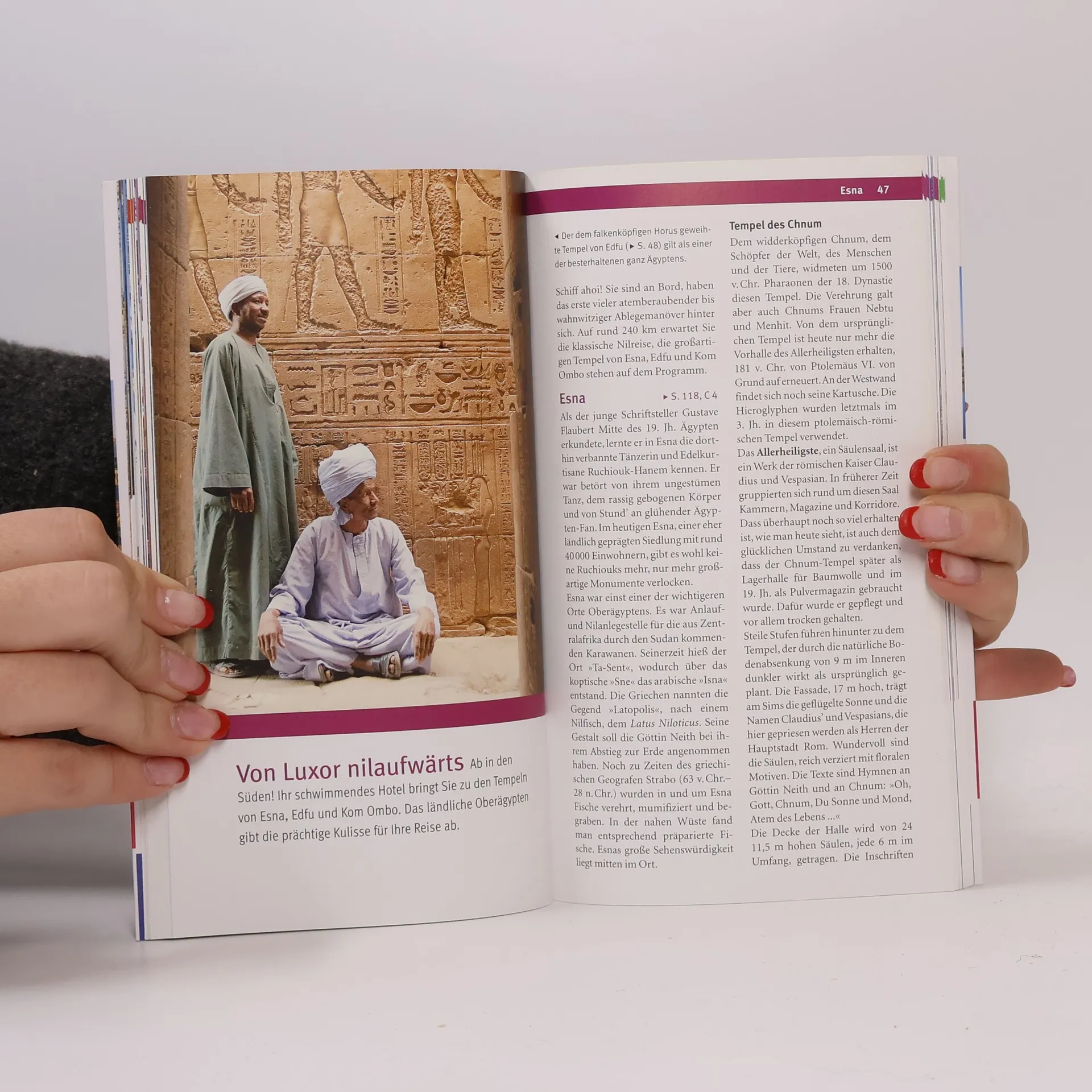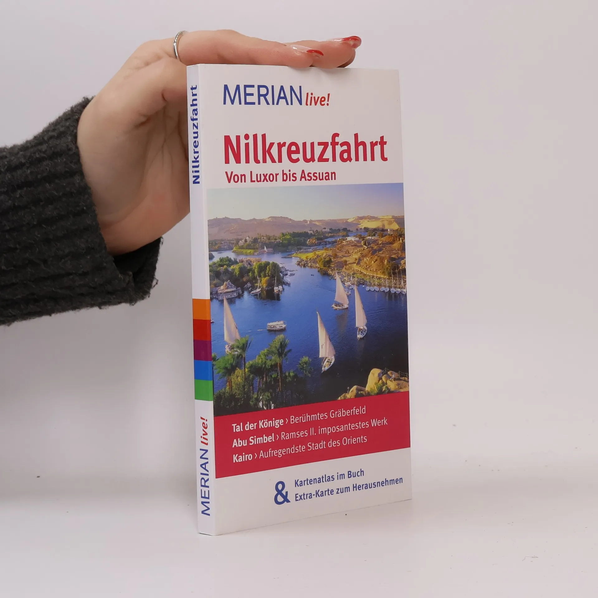 Der Nil, längster Fluss der Welt, ist die Lebensader Ägyptens. Per Schiff legt man während einer Nilkreuzfahrt eine der geschichtsträchtigsten Flussstrecken der Erde zurück und erlebt zwischen Abydos und Abu Simbel eine Zeitreise durch das pharaonische Ägypten. Und auch exotische Speisen, Einkaufen in verwinkelten Basargassen und der Zauber islamischer Feste gehören zu einer Kreuzfahrt. MERIAN live! bietet: - Fundierte Beschreibungen aller wichtigen Orte, Sehenswürdigkeiten und Museen - Sorgfältig ausgewählte Restaurantempfehlungen, Ausgeh- und Shoppingadressen sowie Tipps für Familien - 10 MERIAN-TopTen stellen die Höhepunkte der Reise vor - 10 MERIAN-Tipps führen zu den unbekannten Seiten des Landes - Stadtpläne von Luxor, Karnak, Assuan und Kairo zur leichten Orientierung - Doppelter Vorteil: Kartenatlas im Buch und Extra-Karte zum Herausnehmen