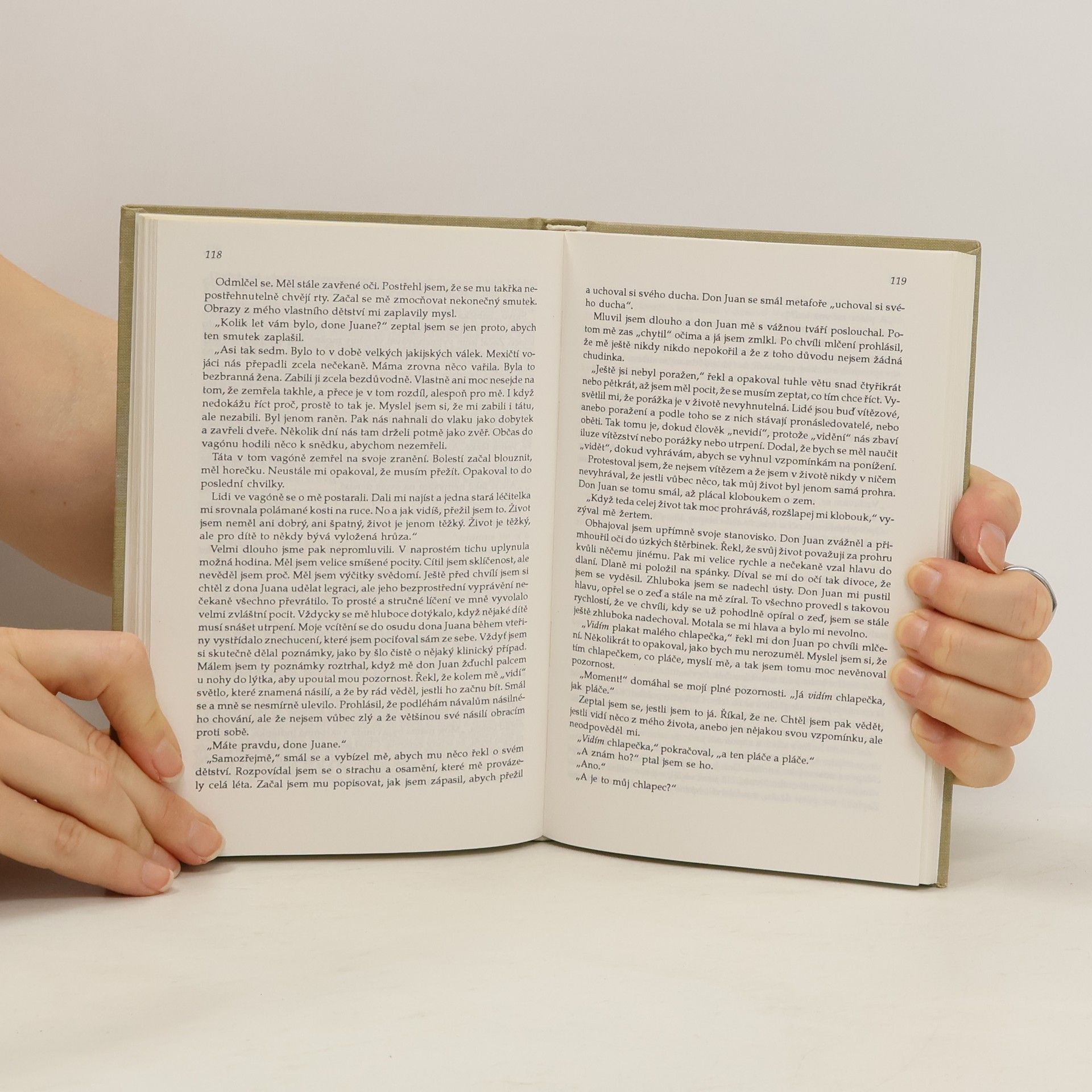Všechny knihy, které C. Castaneda zatím napsal, popisují nejprve jeho učňovská léta, strávená pod vedením dona Juana, později pak další lekce Učení za pomoci dona Genara, doni Soledad a dalších. Formou vyprávění popisuje neuvěřitelnou cestu do říše mnoha rovin vědomí, vnímání, cestu hledání souladu se sebou i se světem, který nám mnohdy připadá neskutečný právě proto, že cesta do něj je namáhavá, a ke každému kroku vedoucímu k dalšímu poznání je třeba mnoho času a pochopení. „V roce 1961, rok po tom, co jsme se seznámili, mi don Juan odhalil, že má určité tajné znalosti o léčivých rostlinách. Řekl, že je „brujo”. Španělské slovo brujo se dá přeložit jako čaroděj, kouzelník, šaman, léčitel. Od té chvíle se náš vztah změnil a já jsem se stal jeho žákem... Způsob, jak don Juan vyučoval, vyžadoval od učedníka nesmírné úsilí. Po pravdě řečeno, potřebná míra účasti a osobního nasazení byla tak vyčerpávající, že jsem koncem roku 1965 musel učení zanechat. S odstupem uplynulých pěti let teď mohu říci, že v té době už začalo učení dona Juana vážně ohrožovat „mou představu světa”. Začínal jsem ztrácet jistotu, kterou všichni máme, že je možné považovat skutečnost každodenního života za samozřejmou.” Vydání první