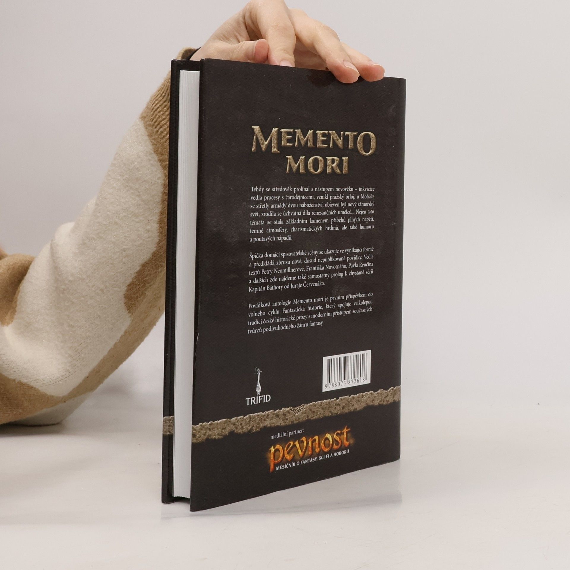 Tehdy se středověk prolínal s nástupem novověku – inkvizice vedla procesy s čarodějnicemi, vznikl pražský orloj, u Moháče se střetly armády dvou náboženství, objeven byl nový zámořský svět, zrodila se úchvatná díla renesančních umělců… Nejen tato témata se stala základním kamenem příběhů plných napětí, temné atmosféry, charismatických hrdinů, ale také humoru a poutavých nápadů. Špička domácí spisovatelské scény se ukazuje ve vynikající formě a předkládá zbrusu nové, dosud nepublikované povídky. Vedle textů Petry Neomillnerové, Františka Novotného, Pavla Renčína a dalších zde najdeme také samostatný prolog k chystané sérii Kapitán Báthory od Juraje Červenáka. Povídková antologie Memento mori je prvním příspěvkem do volného cyklu Fantastická historie, který spojuje velkolepou tradici české historické prózy s moderním přístupem současných tvůrců podivuhodného žánru fantasy. Sestavil Ondřej Jireš.