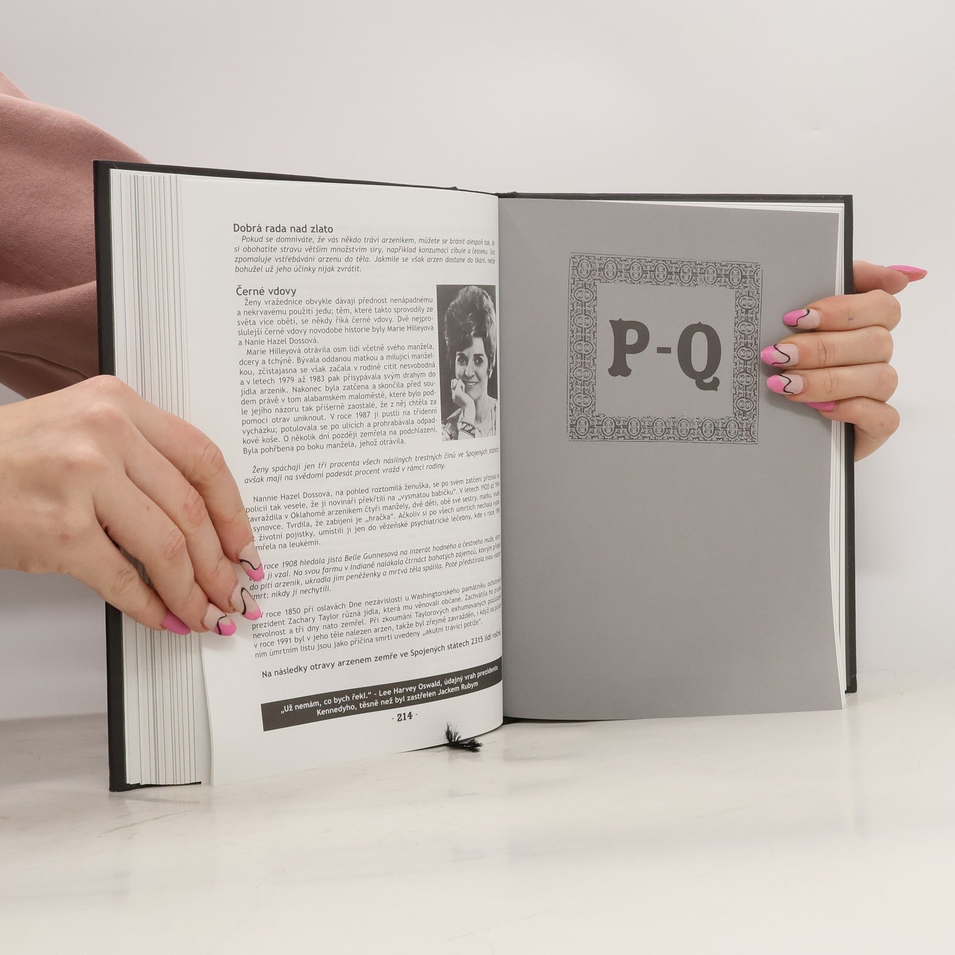 Ať chceme, nebo ne, každý z nás jednou zemře. Obsáhlá encyklopedie Michaela Larga vám poskytne nejen zevrubné informace o tom, z jakých příčin lidé dnes umírají, ale i jedinečnou příležitost se smrti zasmát, dokud jste ještě naživu. V abecedním pořadí uvádí ty nejčastější i nejnepravděpodobnější způsoby úmrtí doplněné statistikami, citáty či veršovanými epitafy, a také množstvím ilustračních fotografií. Naleznete zde na tři sta hesel, od alkoholismu a anorexie přes létající krávy či škytavku až po zábavní parky a zubní protézy; od těch smrtelně vážných až po (smrtelně) absurdní a nechtěně komické. Kniha získala Cenu Brama Stokera, udělovanou za nejlepší díla hororového žánru, v kategorii literatury faktu. Vydání první