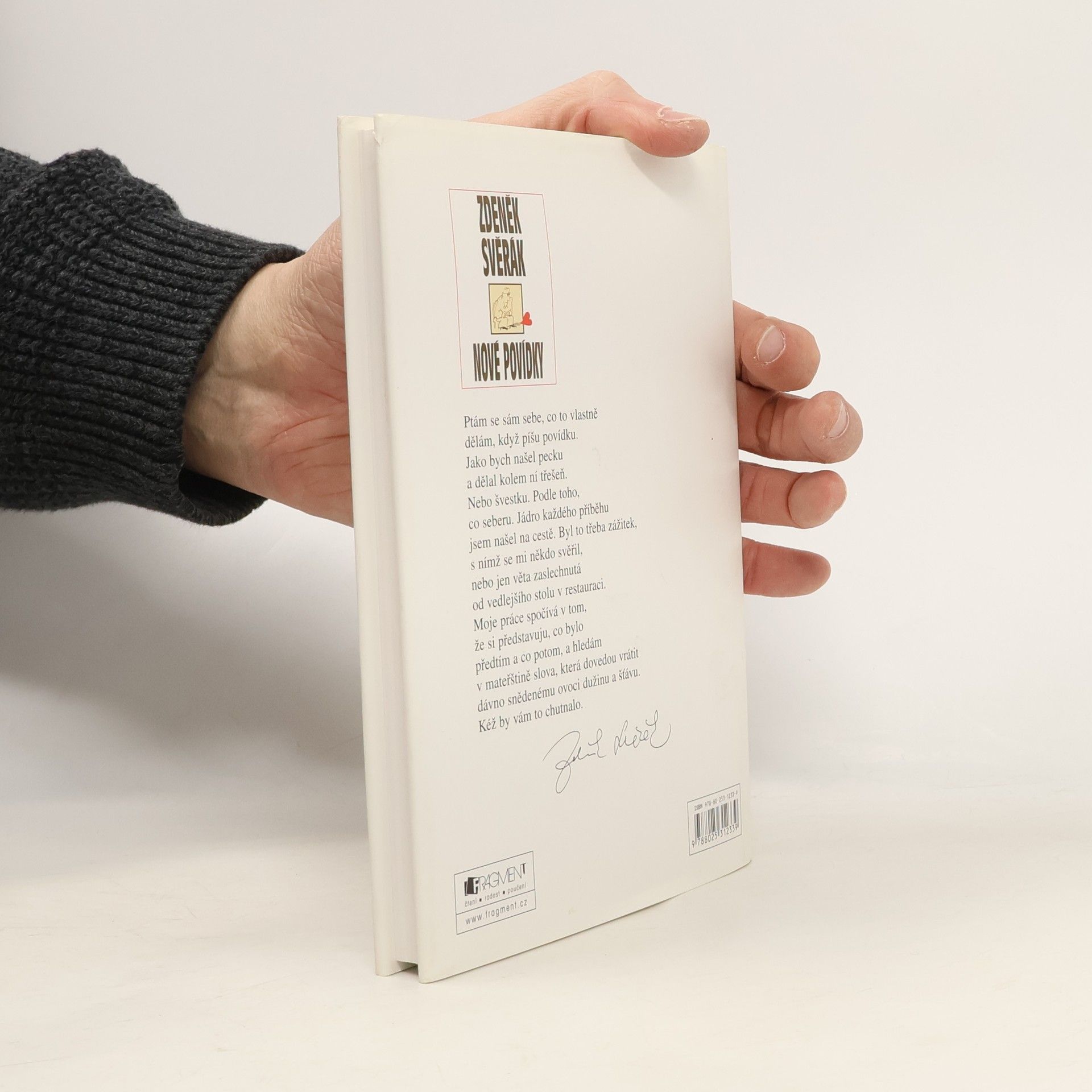 Ptám se sám sebe, co to vlastně dělám, když píšu povídku. Jako bych našel pecku a dělal kolem ní třešeň. Nebo švestku. Podle toho, co seberu. Jádro každého příběhu jsem našel na cestě. Byl to třeba zážitek, s nímž se mi někdo svěřil, nebo jen věta zaslechnutá od vedlejšího stolu v restauraci. Moje práce spočívá v tom, že si představuju, co bylo před tím a co potom, a hledám v mateřštině slova, která dovedou vrátit dávno snědenému ovoci dužinu a šťávu. Kéž by vám to chutnalo. Zdeněk Svěrák