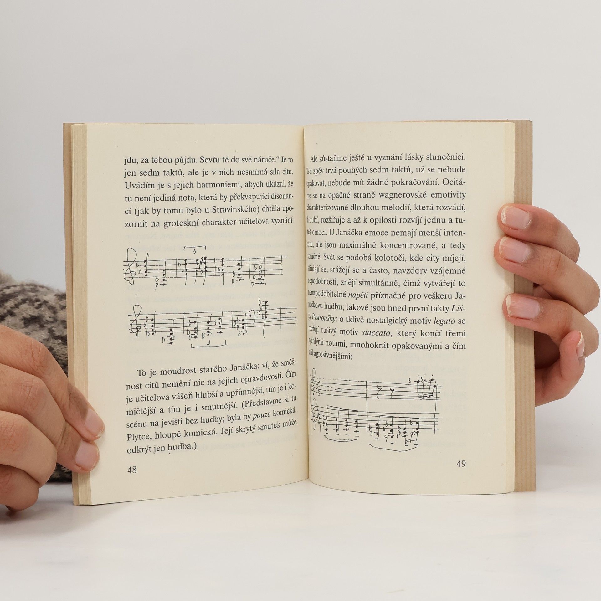 Svazek obsahuje tři Kunderovy texty o Janáčkovi, které vznikly ve Francii mezi rokem 1991 a 2004. V třetím textu (záznamu rozhlasového rozhovoru, který vysílal Český rozhlas 3 – Vltava dne 3. července 2004) formuluje Kundera základní otázku: Je Janáček „jen zajímavým skladatelem jakéhosi exotického koutu Evropy, anebo jedním z tvůrců moderní světové hudby“? Tato otázka podle Kundery provází Janáčkovo dílo jako jeho úděl a prosvítá za všemi texty: v prvním z nich, Hledání přítomného času, je Janáčkova opera srovnávána s úsilím Flauberta a Hemingwaye uchopit „prózu života“ a její „přítomný čas“; v druhém, Liška Bystrouška, drásavá idyla, je Janáček řazen k velkým osamělým antiromantikům Střední Evropy; v posledním, Nepravděpodobný osud (rozhovor s Tomášem Sedláčkem), je Janáčkův osud konfrontován s největšími skladateli moderní hudby, od Schönberga ke Stravinskému.