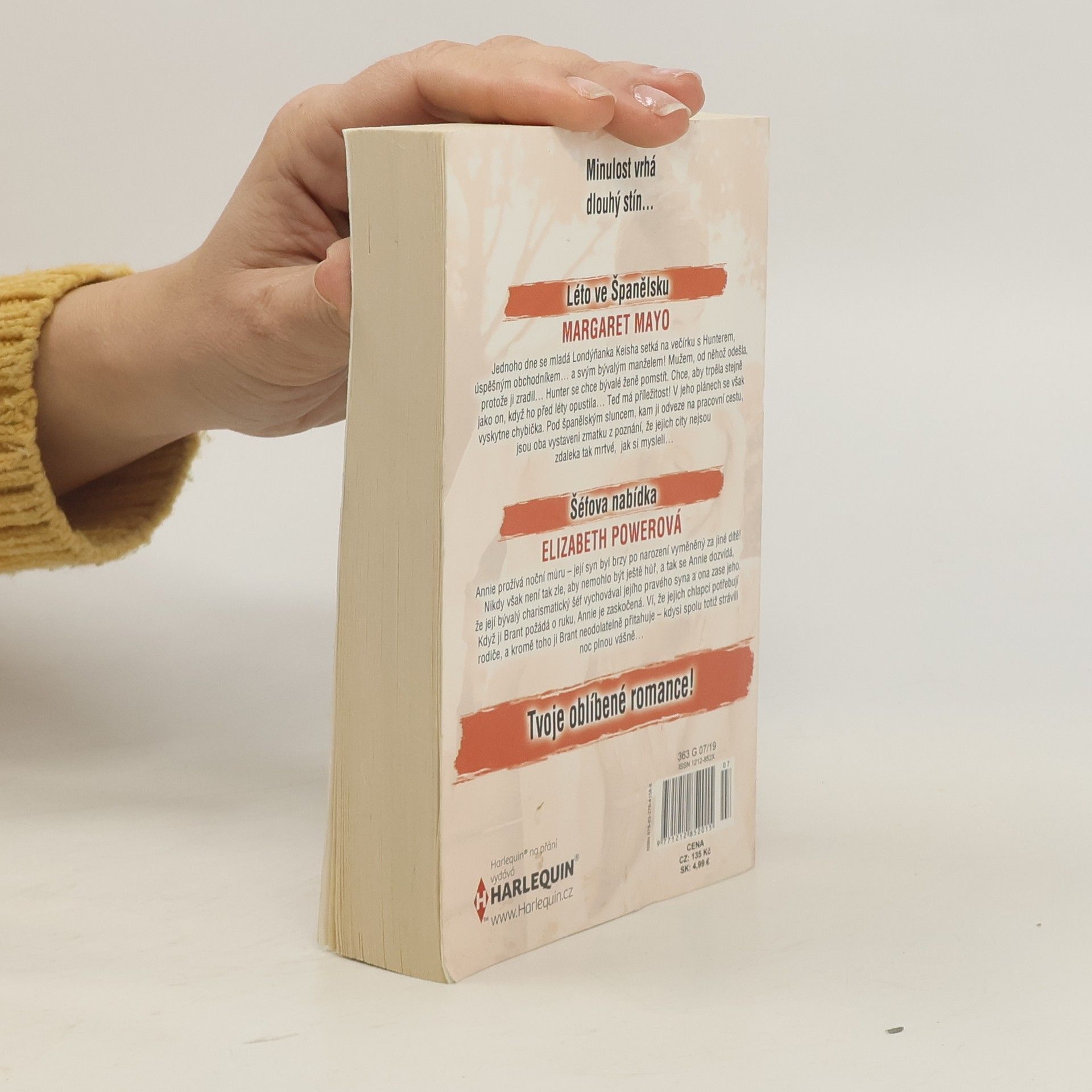 Léto ve Španělsku - Margaret Mayo Jednoho dne se mladá Londýňanka Kiesha setká na večírku s Hunterem, úspěšným obchodníkem... a svým bývalým manželem! Mužem, od něhož odešla, protože ji zradil... Hunter se chce bývalé ženě pomstít. Chce, aby trpěla stejně jako on, když ho předléty opustila... Teď má příležitost! V jeho plánech se však vyskytne chybička. Pod španělským sluncem, kam ji odveze na pracovní cestu, jsou oba vystaveni zmatku z poznání, že jejich city nejsou zdaleka tak mrtvé, jak si myslyli... Šéfova nabídka - Elizabeth Powerová Annie prožívá noční můru - její syn byl brzy po narození vyměněný za jiné dítě! Nikdy však není tak zle, aby nemohlo být ještě hůř, a tak se Annie dozvídá, že její bývalý charismatický šéf vychovával jejího pravého syna a ona zase jeho. Když ji Brant požádá o ruku, Annie je zaskočená. Ví, že jejich chlapci potřebují rodiče, a kromě toho ji Brant neodolatelně přitahuje - kdysi spolu totiž strávili noc plnou vášně...