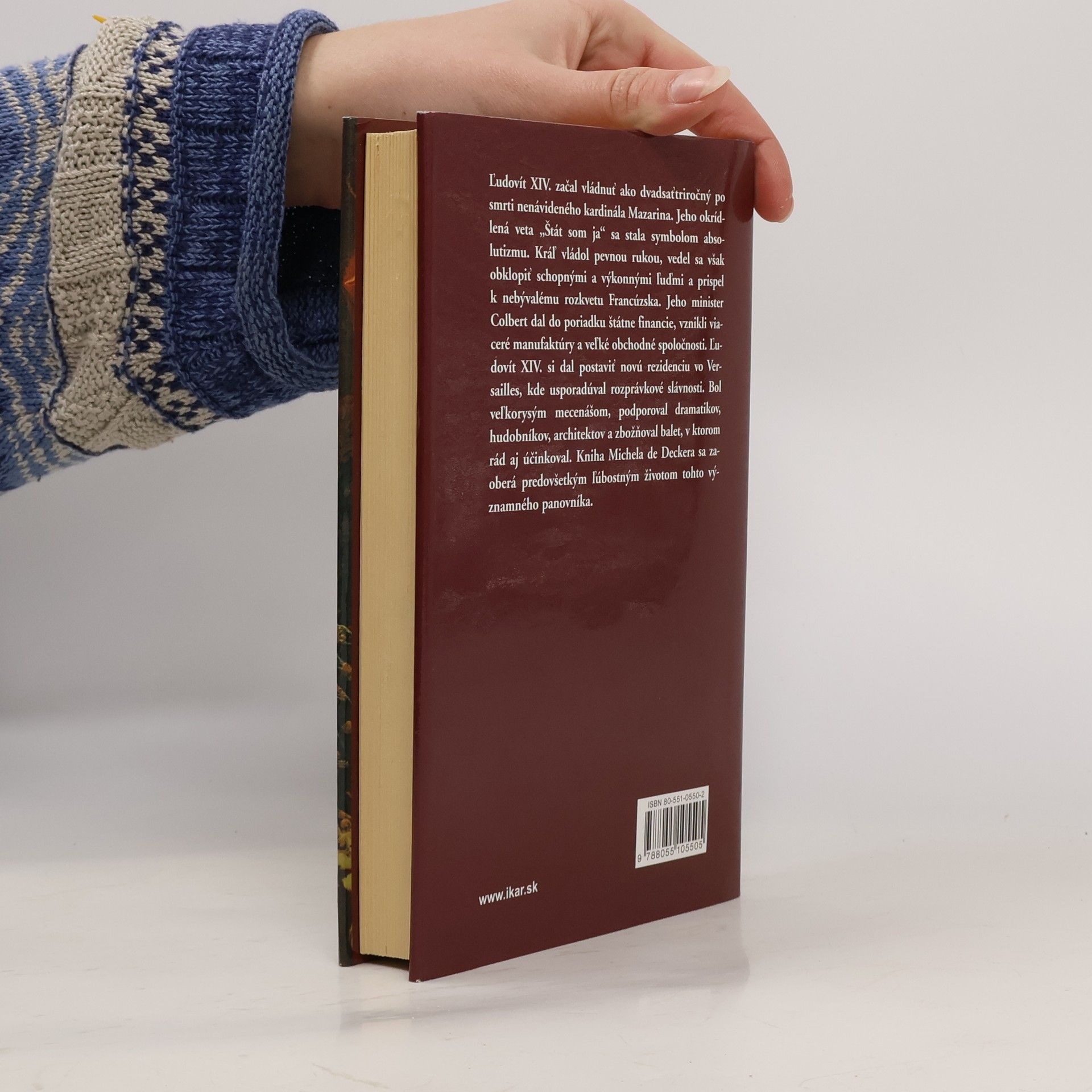 Ľudovít XIV. začal vládnuť ako dvadsaťtriročný. Jeho okrídlená veta „štát som ja“ sa stala symbolom absolutizmu. Kráľ vládol pevnou rukou, vedel sa však obklopiť schopnými a výkonnými ľuďmi a prispel k nebývalému rozkvetu Francúzska. Jeho minister Colbert dal do poriadku štátne financie, vznikli viaceré manufaktúry a veľké obchodné spoločnosti. Ľudovít XIV. si dal postaviť novú rezidenciu vo Versailles, kde usporadúval rozprávkové slávnosti. Kniha Michela de Deckera sa zaoberá predovšetkým ľúbostným životom tohto významného panovníka.