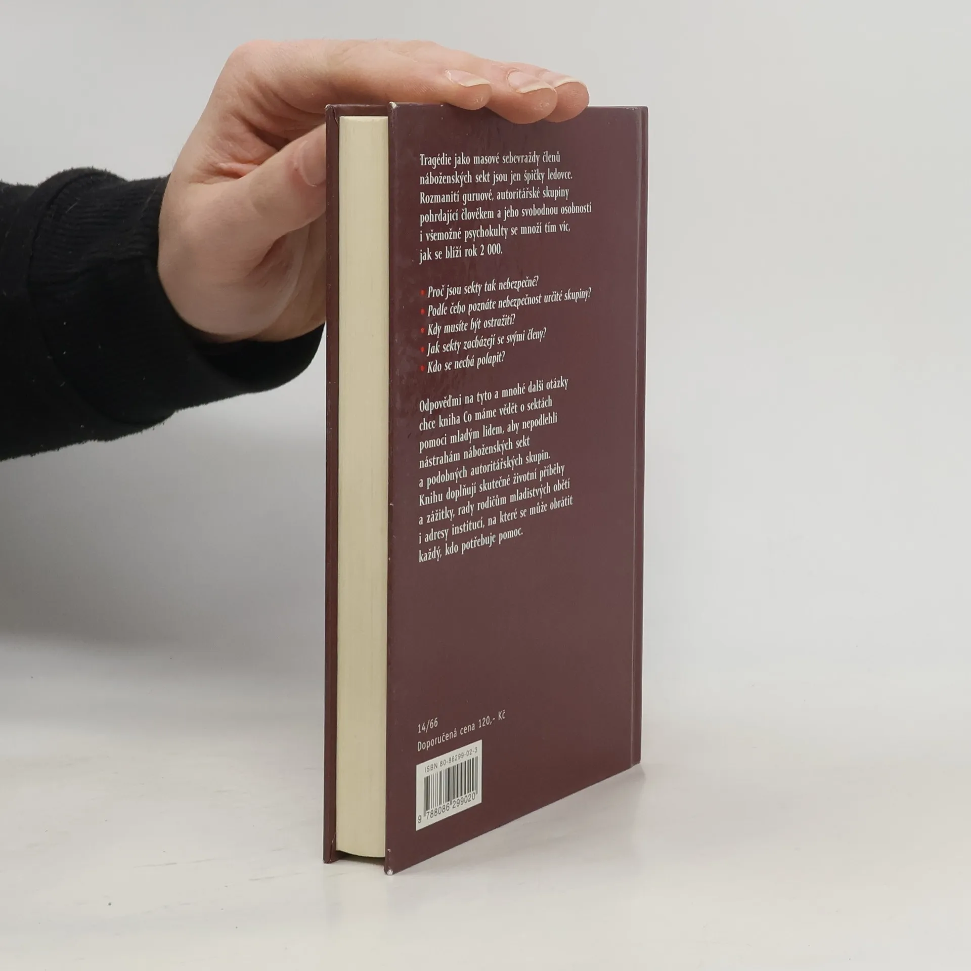 Varovné memento německé autorky, které přibližuje mechanismy, jimiž se řídí v novodobé společnosti stále se množící náboženské sekty, a praktiky jejich neomylných vůdců, kteří se snaží potlačit svobodnou vůli jednotlivce, je shrnujícím pohledem na jeden z palčivých problémů moderní společnosti. Kniha je doplněna o očitá svědectví členů těchto společenství a o český doslov, který v krátkosti mapuje situaci u nás a podává informace o institucích, kam je možné se obrátit o pomoc. Vydání první