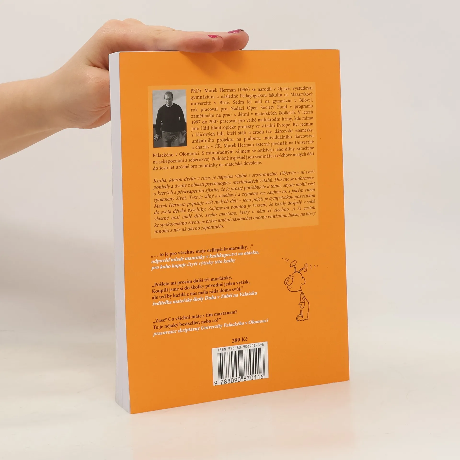 Kniha je cenná hlavně tím, že je napsána odborně, přitom naprosto srozumitelně, autor si s pomyslným čtenářem vlastně povídá. Objevíte v ní svěží pohledy a úvahy z oblasti sebepoznání, mezilidských vztahů a výchovy malých dětí. Dozvíte se informace, o kterých s překvapením zjistíte, že je prostě potřebujete k tomu, abyste mohli vést spokojený život. Text v knize je silný a místy až naléhavý a zejména vás zaujme to, s jakým citem Marek Herman popisuje svět malých dětí.