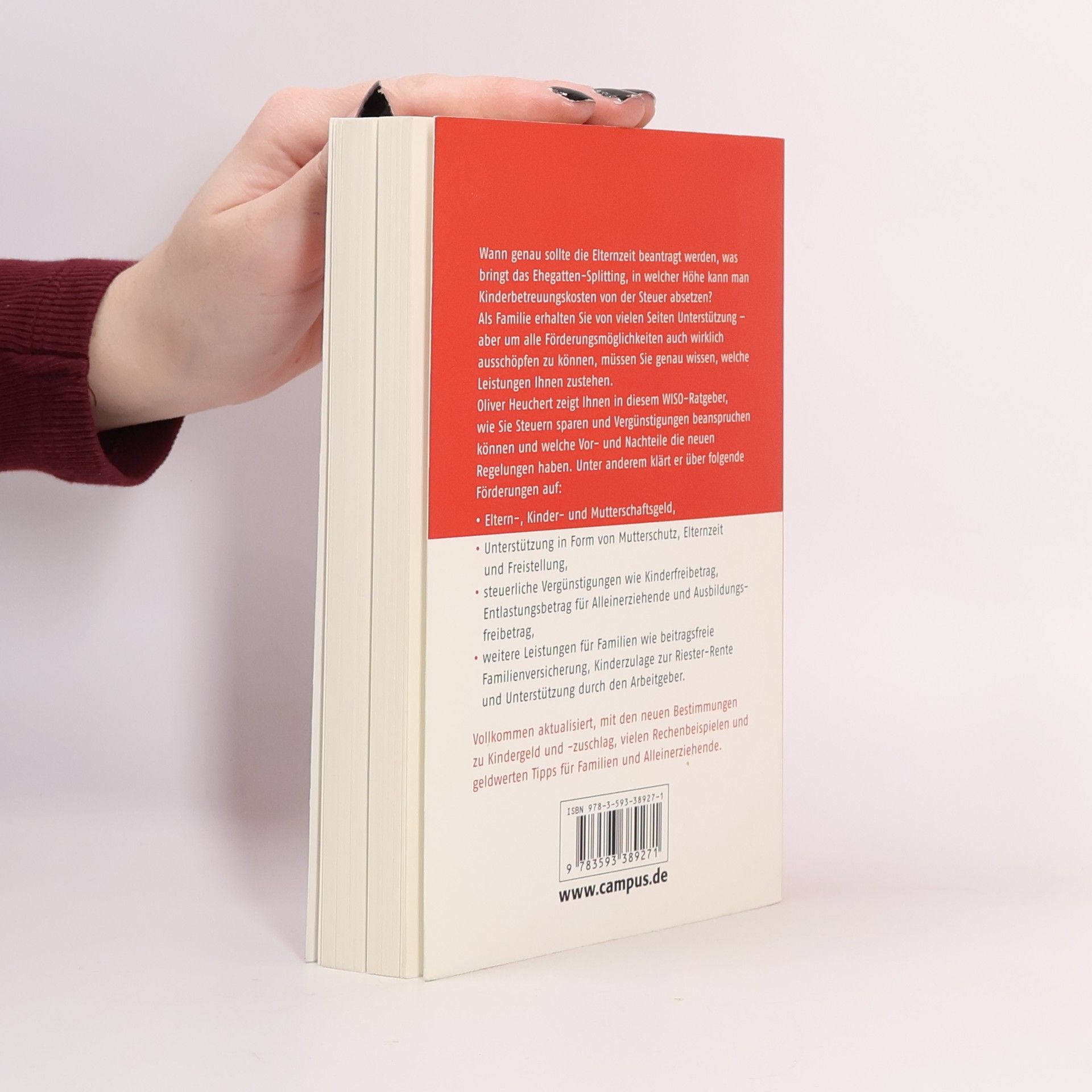 Familien sollen finanziell gefördert werden – doch oft ist den Eltern aufgrund der verwirrenden Bestimmungen nicht klar, welche staatlichen Hilfen es heute gibt. Dieses Buch bietet übersichtlichen Rat und schnelle Hilfe. Oliver Heuchert klärt unter anderem über folgende Förderungen auf: • Eltern-, Kinder- und Erziehungsgeld • Unterstützung in Form von Mutterschutz, Eltern- oder Erziehungszeit • steuerliche Vergünstigungen wie Kinderfreibetrag und Ausbildungsfreibetrag • weitere Leistungen wie beitragsfreie Familienversicherung, Kinderzulage zur Riester-Rente und Unterstützung durch den Arbeitgeber