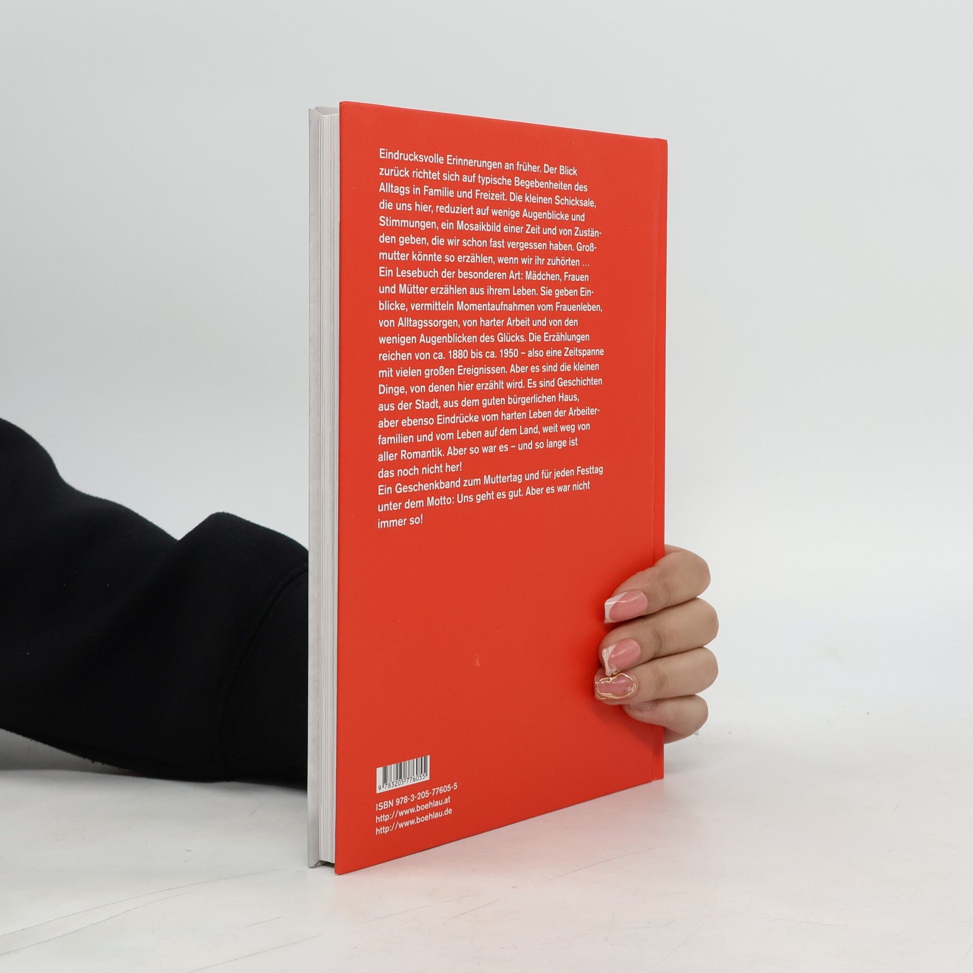 Eindrucksvolle Erinnerungen an früher. Der Blick zurück richtet sich auf typische Begebenheiten des Alltags in Familie und Freizeit. Die kleinen Schicksale, die uns hier, reduziert auf wenige Augenblicke und Stimmungen, Ereignisse und Schicksale ein Mosaikbild einer Zeit und von Zustände geben, die wir schon fast oder ganz vergessen haben. Großmutter könnte so erzählen, wenn wir ihr zuhörten. Ein Lesebuch der besonderen Art: Mädchen, Frauen und Mütter erzählen auf unterschiedlichste Art aus ihrem Leben. Sie geben Einblicke, vermitteln Momentaufnahmen vom Frauenleben, von Alltagssorgen, von harter Arbeit und von den wenigen Augenblicken des Glücks. Die Erzählungen reichen von ca. 1880 bis ca. 1950 – also eine Zeitspanne mit vielen großen Ereignissen. Aber es sind die kleinen Dinge, von denen hier erzählt wird. Es sind Geschichten aus der Stadt, aus dem guten bürgerlichen Haus, aber ebenso Eindrücke vom harten Leben der Arbeiterfamilien und vom Leben auf dem Land, weit weg von aller Romantik. Aber so war es – und so lange ist das noch nicht her! Ein Geschenkband zum Muttertag und für jeden Festtag unter dem Motto: Uns geht es gut. Aber es war nicht immer so!