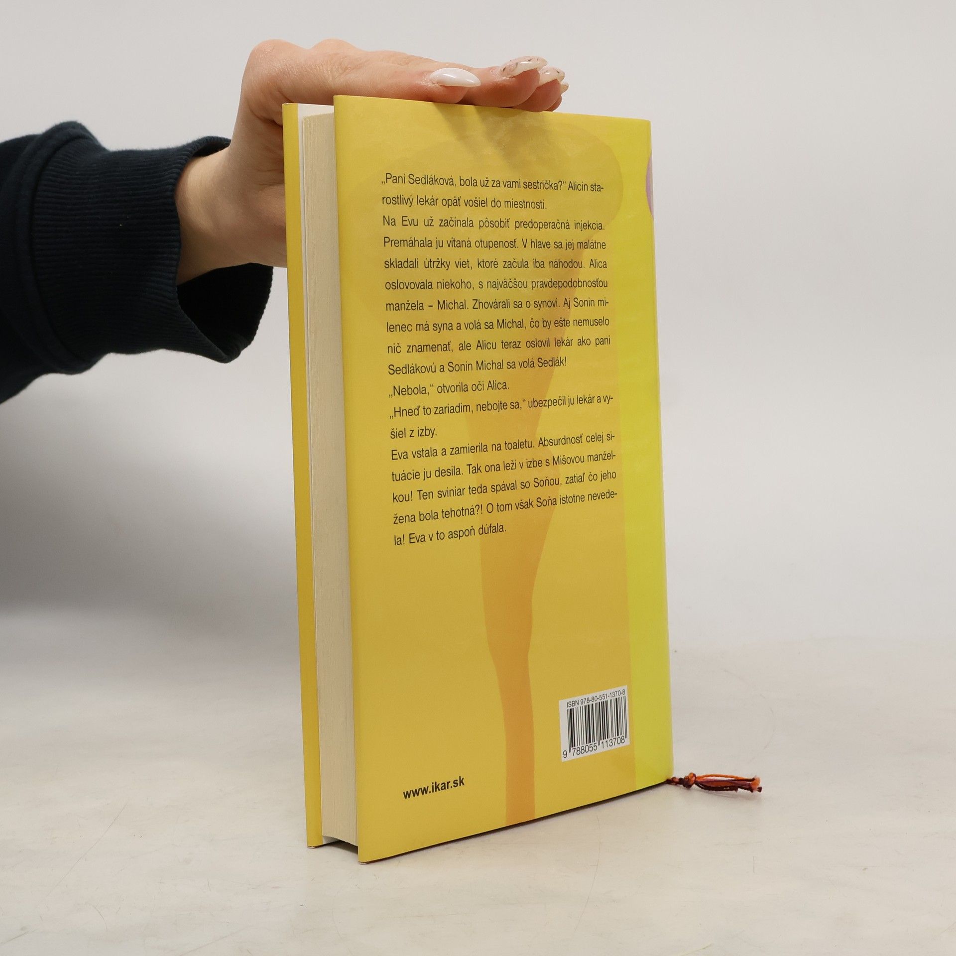 Príbeh o intímnych bolestiach žien i tom, ako sa človek celkom náhodou môže stať aktérom pokryteckej hry. Pozitívny tehotenský test s dvomi čiarkami a radosť z nadchádzajúceho materstva nie sú ešte zárukou, že sa všetko skončí na pôrodnej sále. Hlavná hrdinka tejto knižky, Eva Materasová, je bolestne zasiahnutá stratou svojho nenarodeného dieťaťa. Smutná životná skúsenosť ju núti prehodnotiť svoj doterajší postoj k materstvu. Zároveň rieši zložitú situáciu, kedy sa ocitla v roli dôverníčky svojich dvoch priateliek, ktoré majú vzťah s tým istým mužom. Jedna je Evinou kolegyňou z redakcie, dokonalou kráskou, ktorá bezradne podlieha šarmu ženatých mužov a druhá je manželkou jedného z tých šarmantných a záletných. Obe však prežívajú zložitú životnú krízu a obe sa so svojimi problémami obracajú na Evu. Tá si kladie otázku, do akej miery môže byť k svojim priateľkám úprimná, aby nestratila ani jednu z nich.