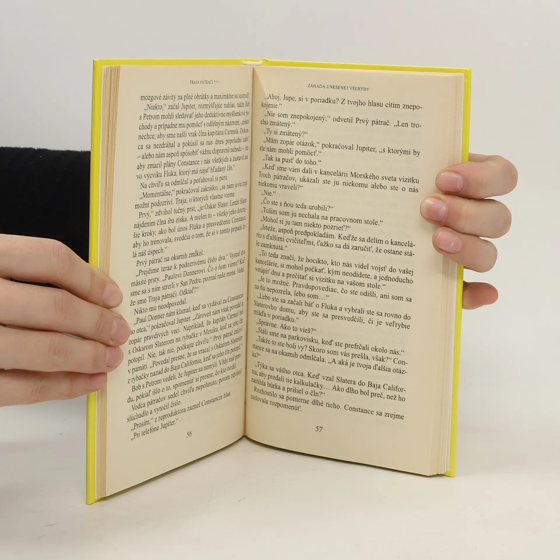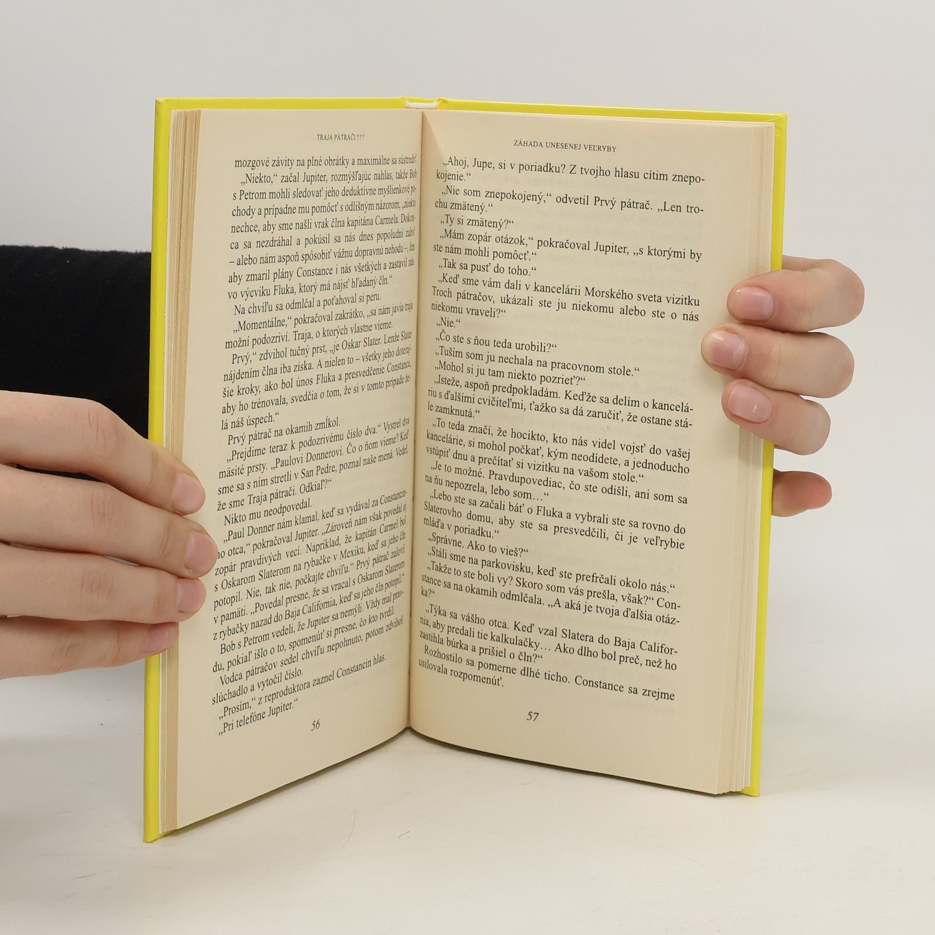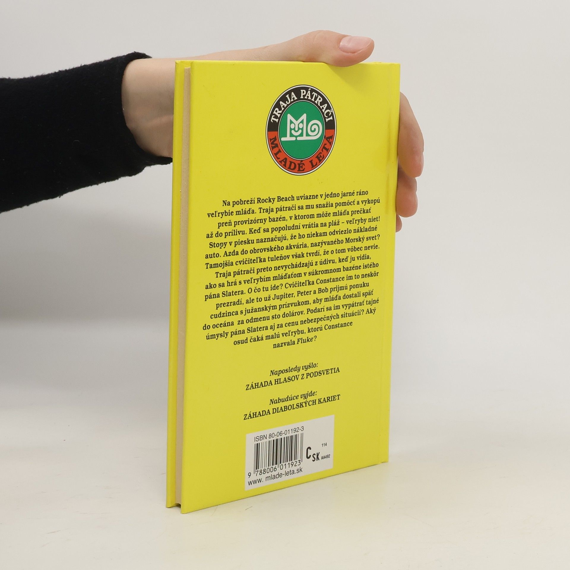 Na pobreží Rocky Beach uviazne v jedno jarné ráno veľrybie mláďa. Traja pátrači sa mu snažia pomôcť a vykopú preň provizórny bazén, v ktorom môže mláďa prečkať až do prílivu. Keď sa popoludní vrátia na pláž, veľryby niet ! Stopy v piesku naznačujú, že ho niekam odviezlo nákladné auto. Azda do obrovského akvária, nazývaného Morský svet ? Tamojšia cvičiteľka však tvrdí, že o tom vôbec nevie. Traja pátrači preto nevychádzajú z údivu, keď ju vidia, ako sa hrá s veľrybím mláďaťom v súkromnom bazéne istého pána Slatera. O čo tu ide ? Cvičiteľka Constance im to neskôr prezradí, ale to už Jupiter, Peter a Bob prijmú ponuku cudzinca s južanským prízvukom, aby mláďa dostali späť do oceána za odmenu sto dolárov. Podarí sa im vypátrať tajné úmysly pána Slatera aj za cenu nebezpečných situácií ? Aký osud čaká malú veľrybu, ktorú Constance nazvala Fluke ?