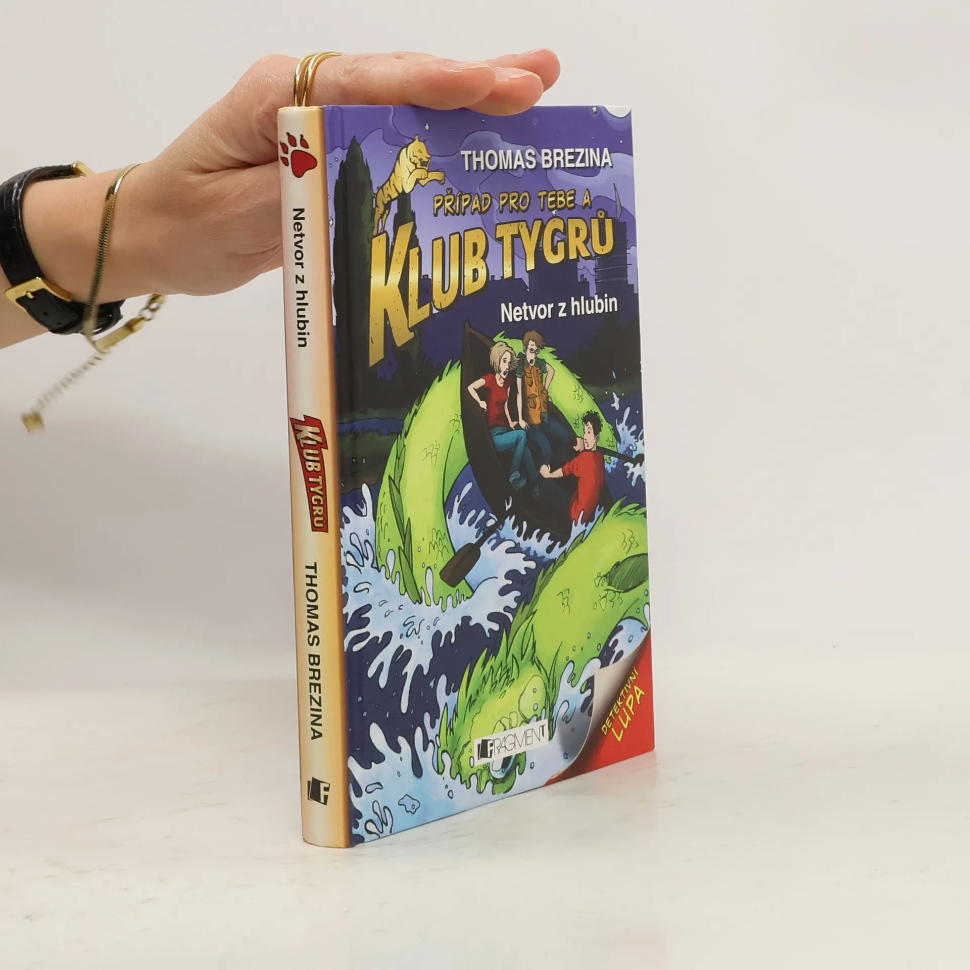 Lucovi někdo ukradl nejdůležitejší předmět z jeho detektivní výbavy - speciální minipočítač. Zloděj mu ho chce vrátit a k předání má dojít v nočních hodinách u jezírka v parku. Na Tygry tam však místo počítače čeká obrovská vodní příšera. Jak se mohla tahle pravěká nestvůra dostat do jezírka? Zapoj se do pátrání i ty a zažij celé dobrodružství z první ruky! 2. dotisk v roce 2015