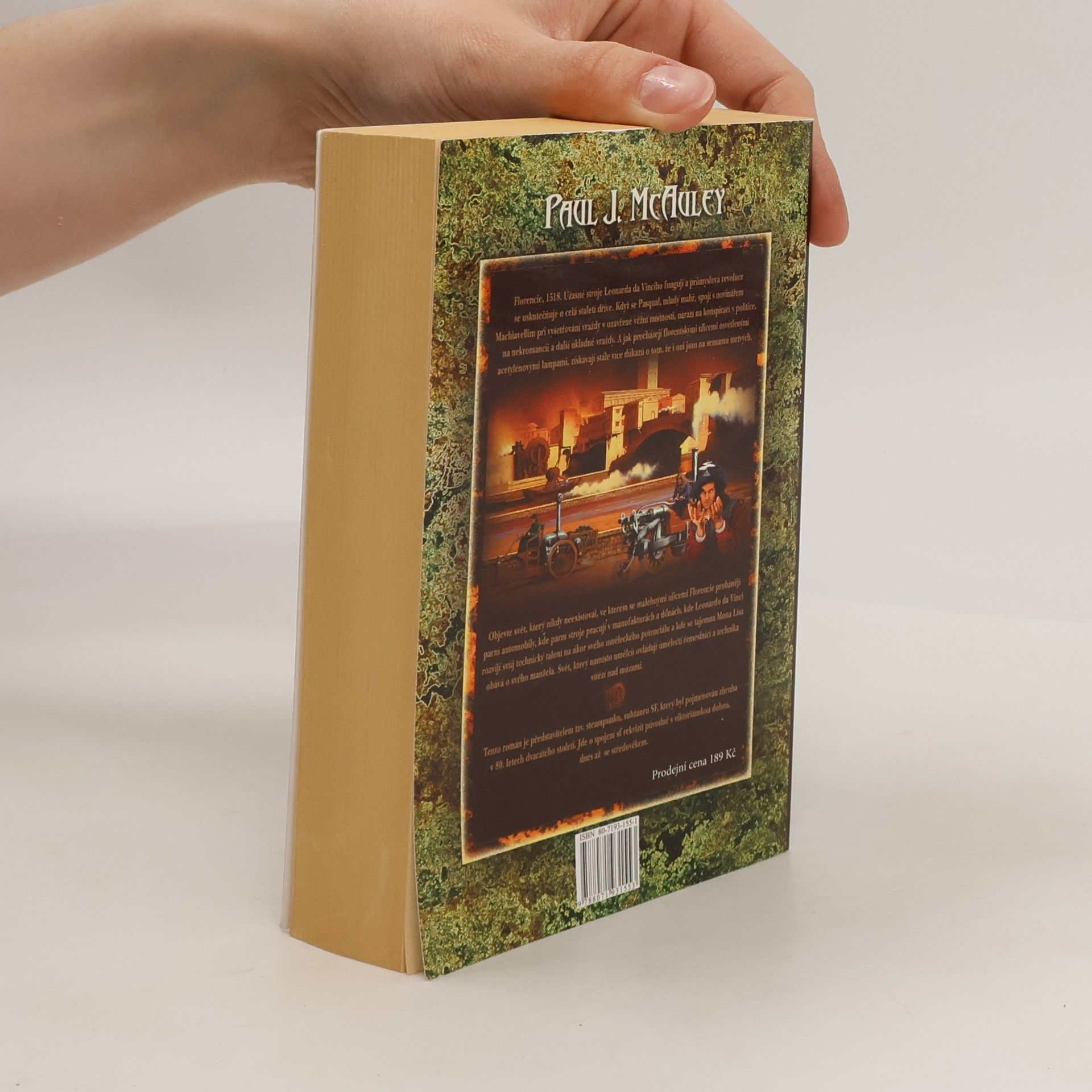 Florencie, 1518. Úžasné stroje Leonarda da Vinciho fungují a průmyslová revoluce se uskutečňuje o celá staletí dříve. Když se Pasqual, mladý malíř, spojí s novinářem Machiavellim při vyšetřování vraždy v uzavřené věžní místnosti, narazí na konspiraci v politice, na nekromancii a další úkladné vraždy. A jak procházejí florentskými ulicemi osvětlenými acetylénovými lampami, získávají stále více důkazů o tom, že i oni jsou na seznamu mrtvých. Objevte svět, který nikdy neexistoval, ve kterém se malebnými ulicemi Florencie prohánějí parní automobily, kde parní stroje pracují v manufakturách a dílnách, kde Leonardo da Vinci rozvíjí svůj technický talent na úkor svého uměleckého potenciálu a kde se tajemná Mona Lisa obává o svého manžela. Svět, který namísto umělců ovládají umělečtí řemeslníci a technika vítězí nad múzami. Tento román je představitelem tzv. steampunku, subžánru SF, který byl pojmenován zhruba v 80. letech dvacátého století. Jde o spojení sf rekvizit původně s viktoriánskou dobou, dnes až se středověkem.